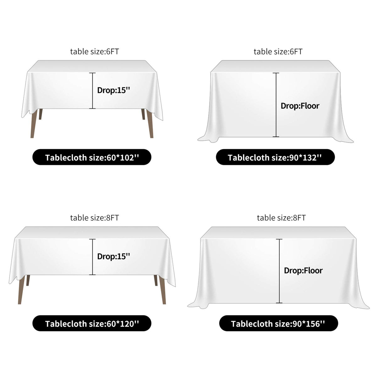 • Q: What are the dimensions of the tablecloth? A: Each tablecloth measures 90 inches by 132 inches, making it suitable for 6 feet tables.