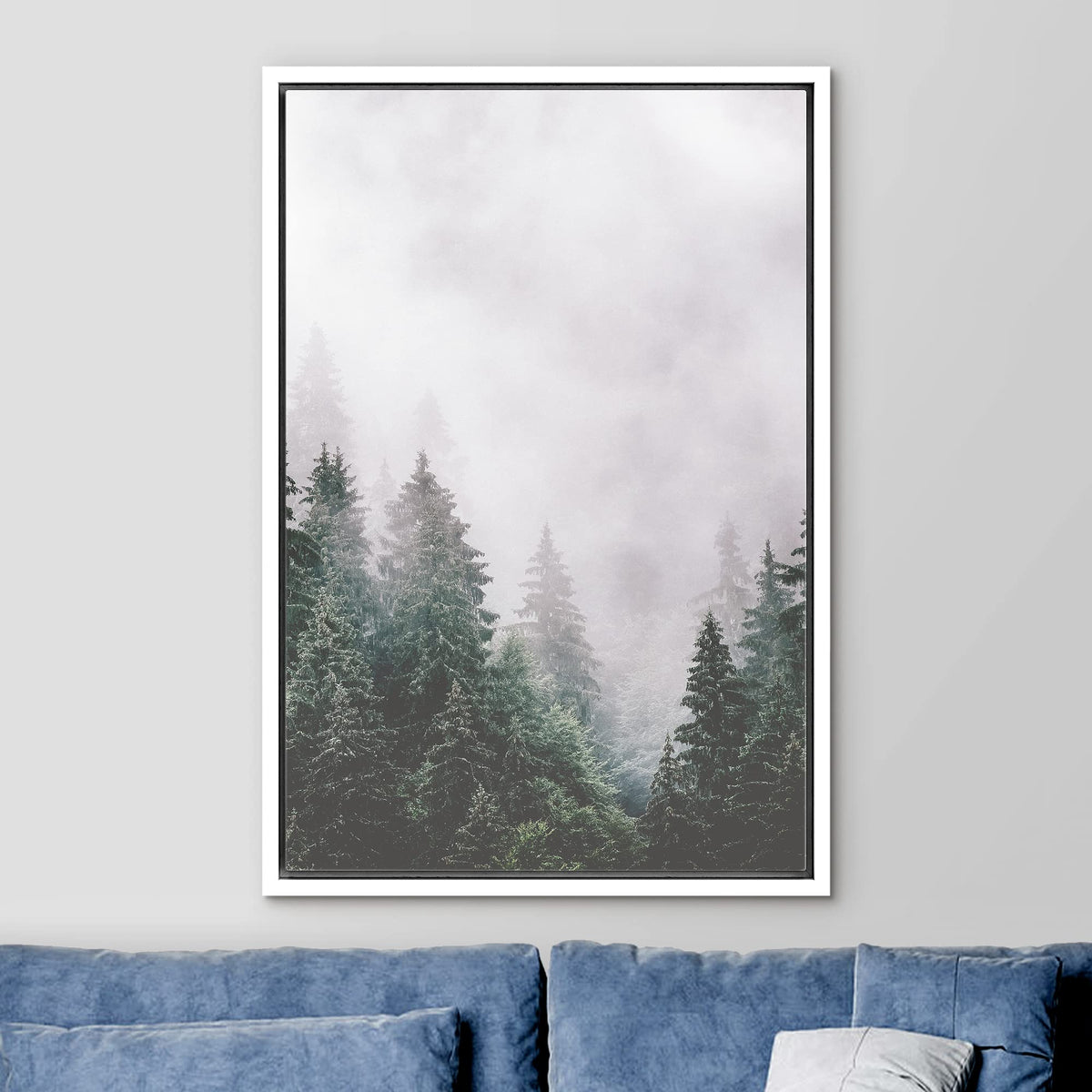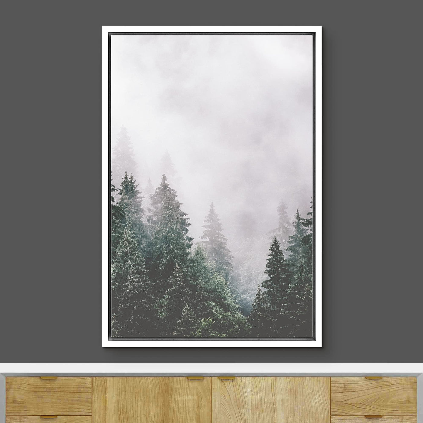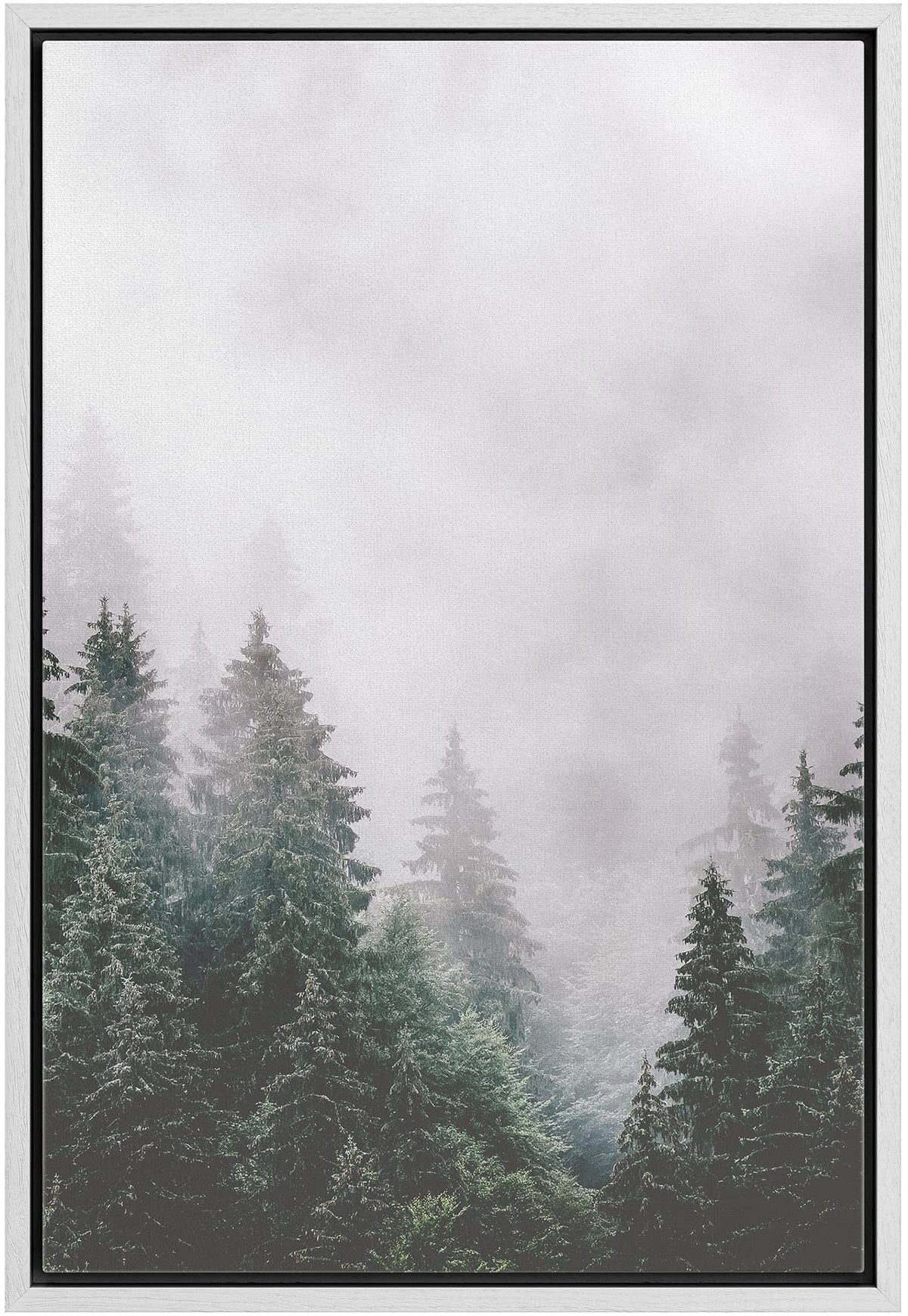 Ashbrook Framed Canvas Print Wall Art Washed Out Mist Over Forest Pine Trees Nature Wilderness Photography Modern Rustic Scenic