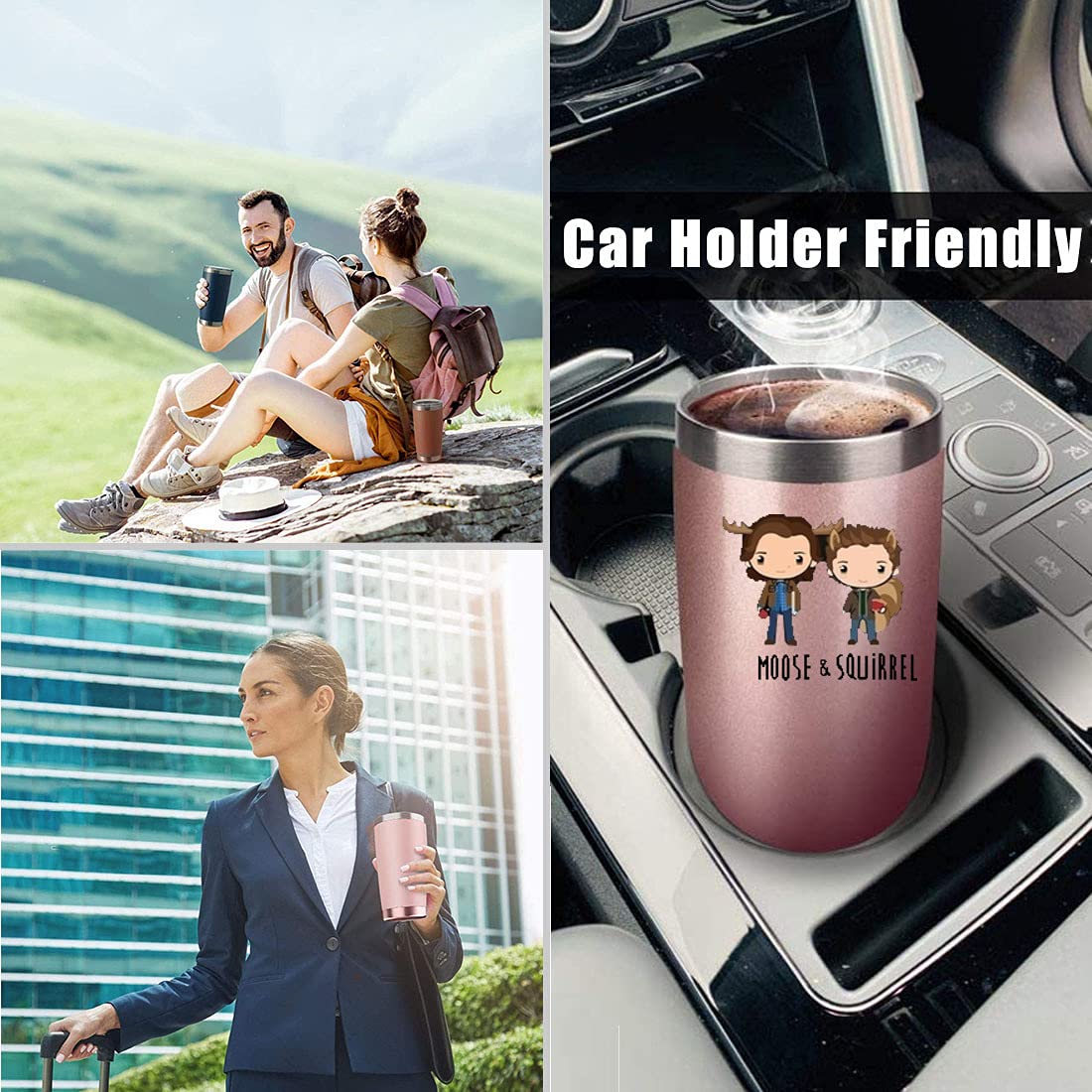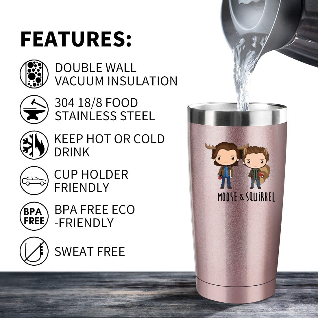Athand 20Oz Stainless Steel Insulated Pattern Tumbler With Lid Travel Coffee Mug - Sam & Dean Rose Gold Vacuum Tumbler Double Wa