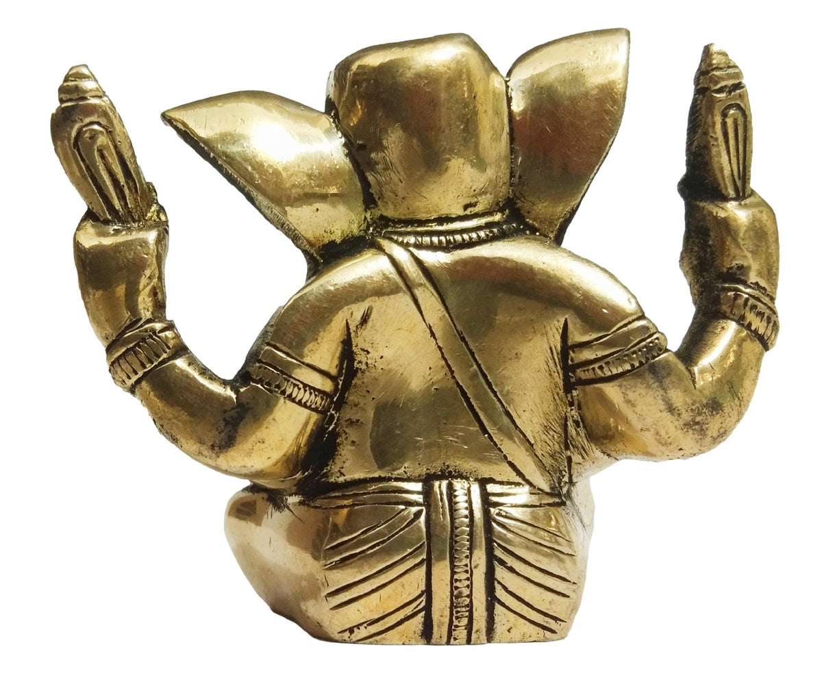 Athizay Ganesha Idol Brass Vamamukhi Ganesh Antique Gold Finish || 8 Cm || 600 Gms || Ganpati Murti Moorti Statues