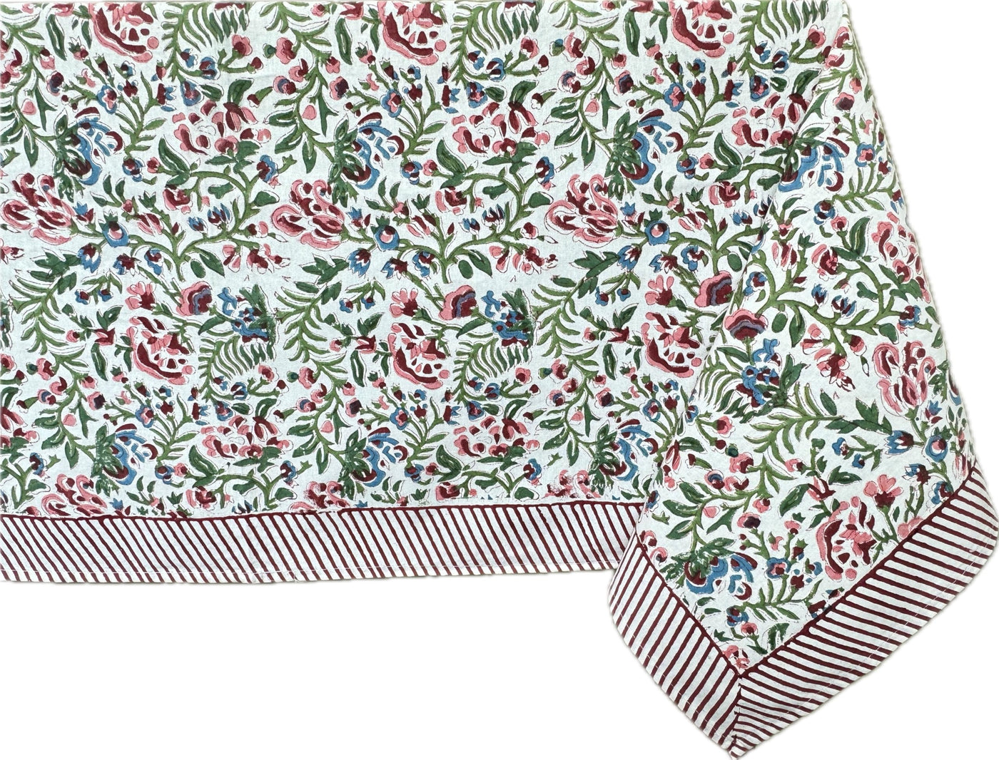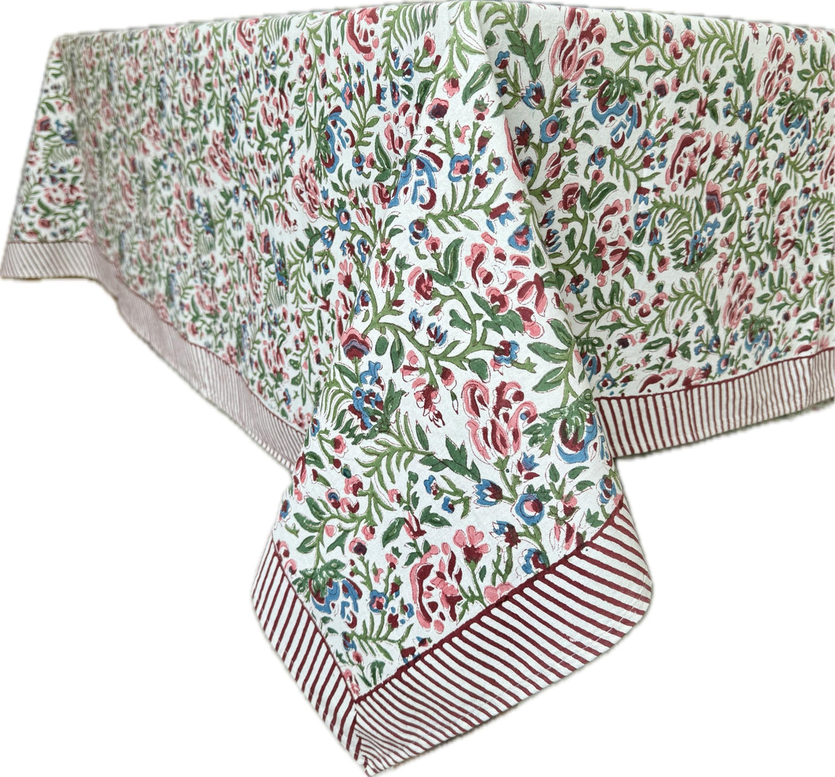 Atosii Ambrosia 100% Cotton Rectangle Boho Spring Summer Tablecloth, Handblock Floral Table Cloth Linen For Kitchen Dining Parti