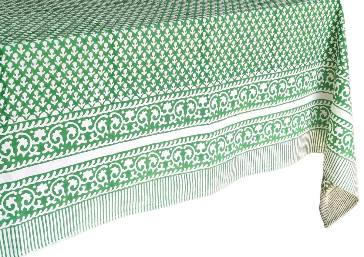 ATOSII Queen Green 100% Cotton Tablecloth, Handblock Print Rectangle Table Cover for Kitchen Dining I Tabletop Linen I Parties,