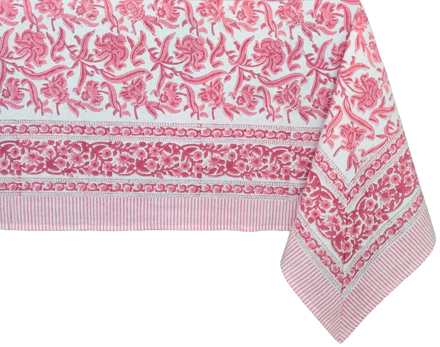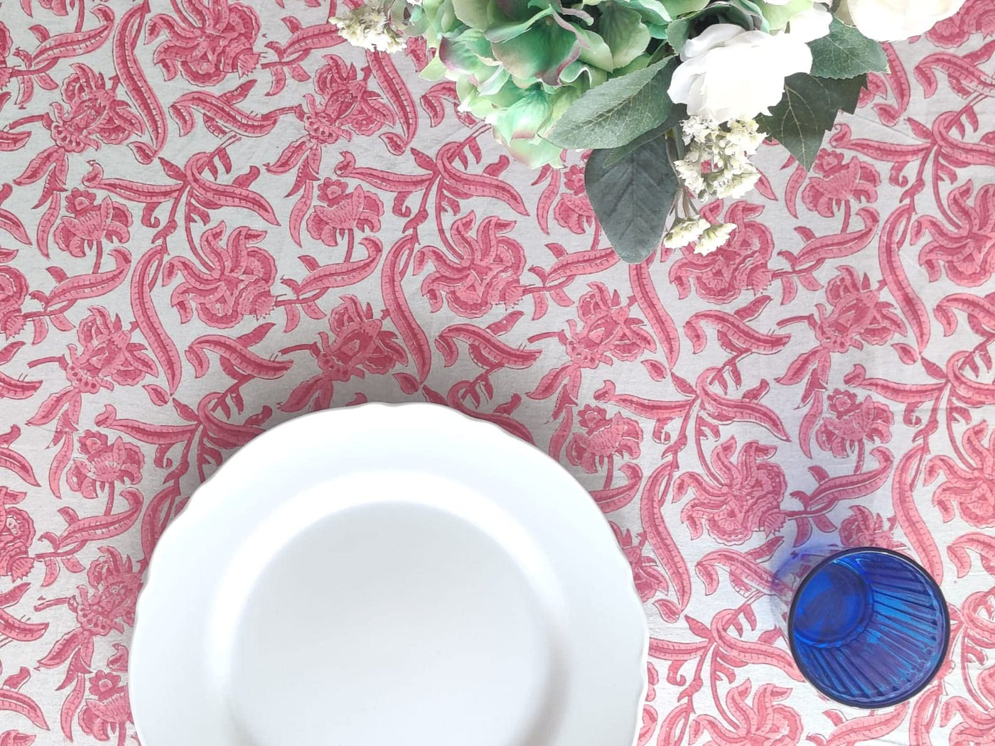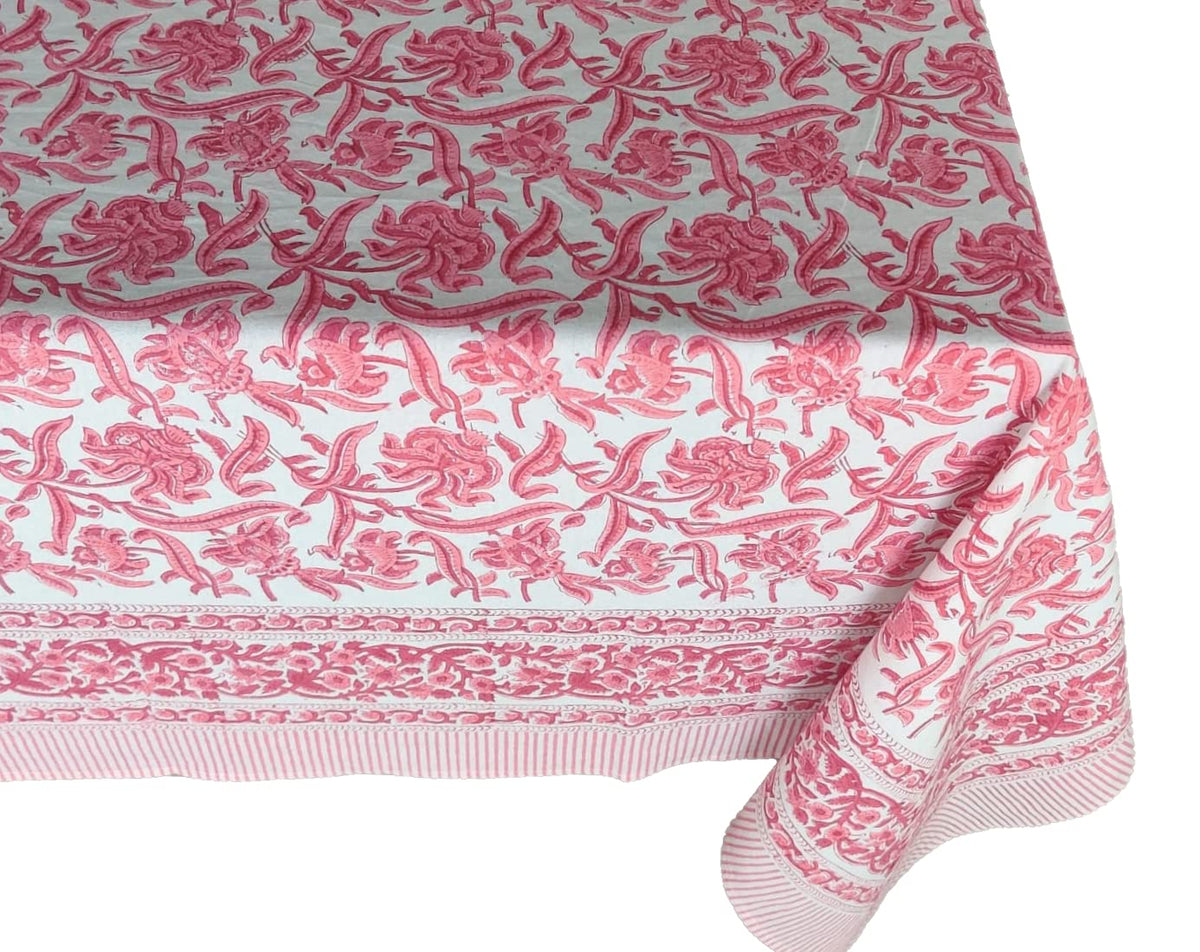 ATOSII Red Bloom 100% Cotton Tablecloth, Handblock Print Rectangle Table Cover for Kitchen Dining I Tabletop Linen I Parties, We