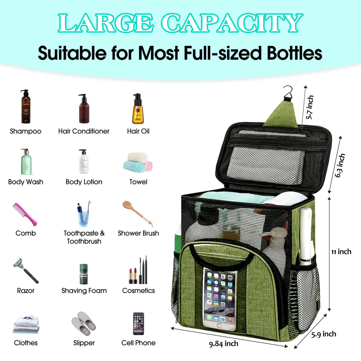 Attmu Portable Shower Caddy College Tote Bag, Quick Dry Hanging Toiletry Bag, Large Capacity Mesh Shower Caddy Portable For Coll