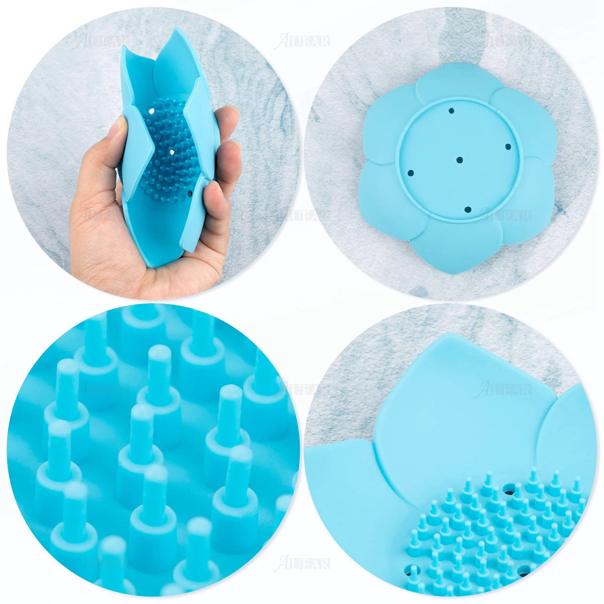 Auear, 4 Pack Lotus Flower Shape Silicone Soap Dish Holder Stand For Bar