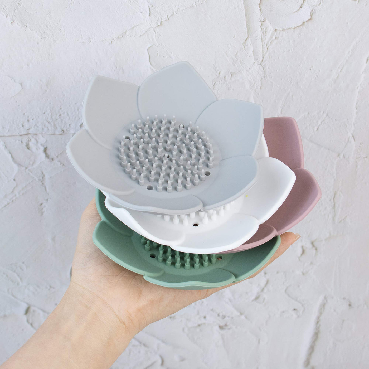 • Q: How many soap dishes are included in the pack? A: Each pack includes 4 soap dishes, featuring four different colors: green, pink, gray, and white.
