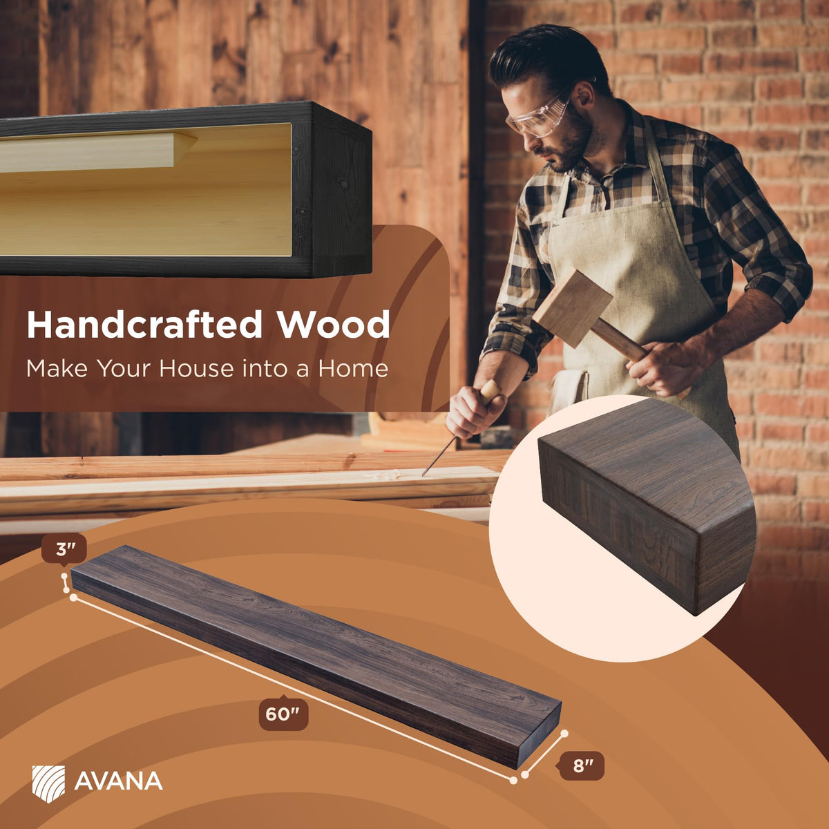 - Q: What are the dimensions of the Avana Fireplace Mantel Shelf? A: The Avana Fireplace Mantel Shelf measures 60 inches in length, 8 inches in width, and 3 inches in height.