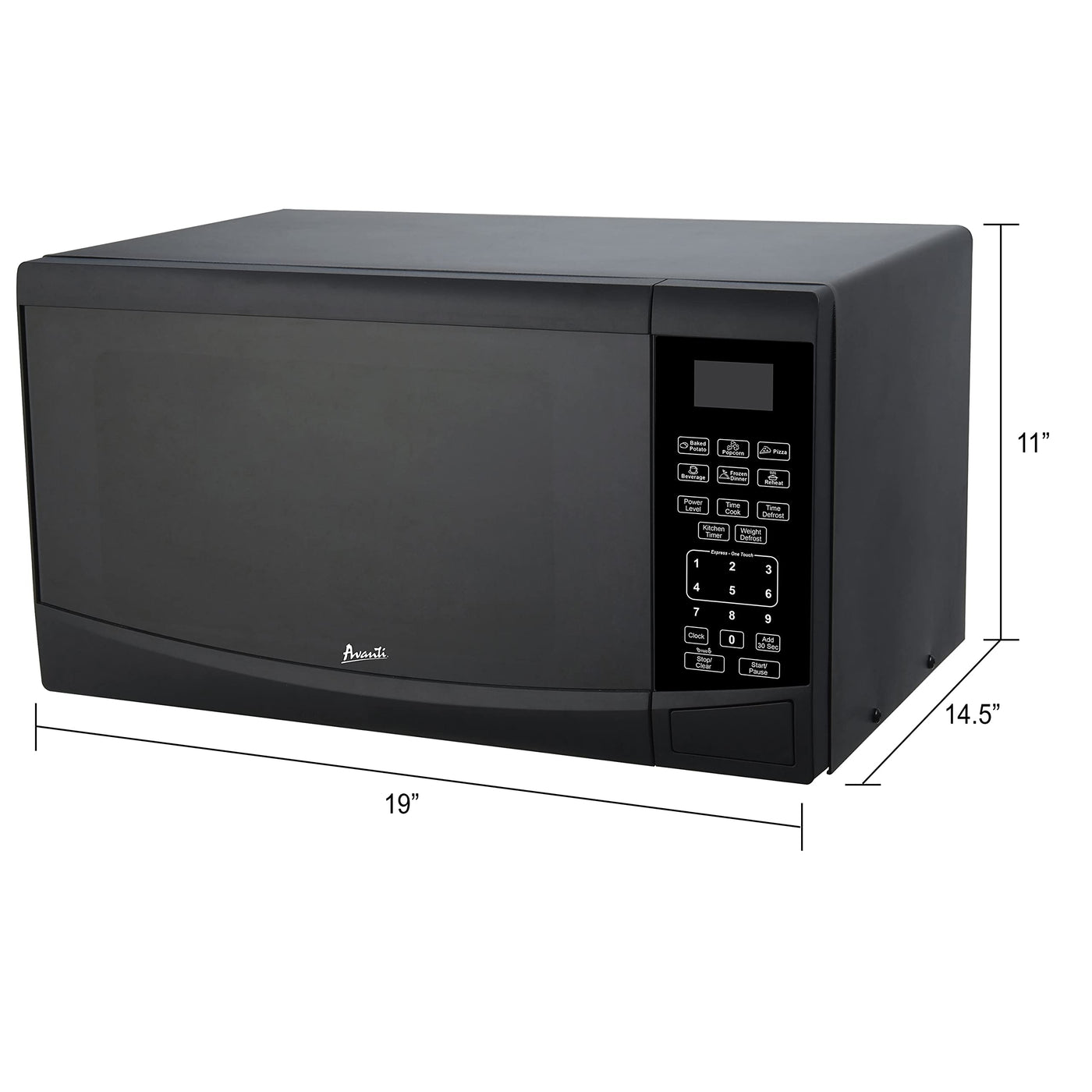 • Q: What are the dimensions of the Avanti Microwave Oven? A: The Avanti Microwave Oven has a compact size of 0.9 cubic feet, making it suitable for small spaces.