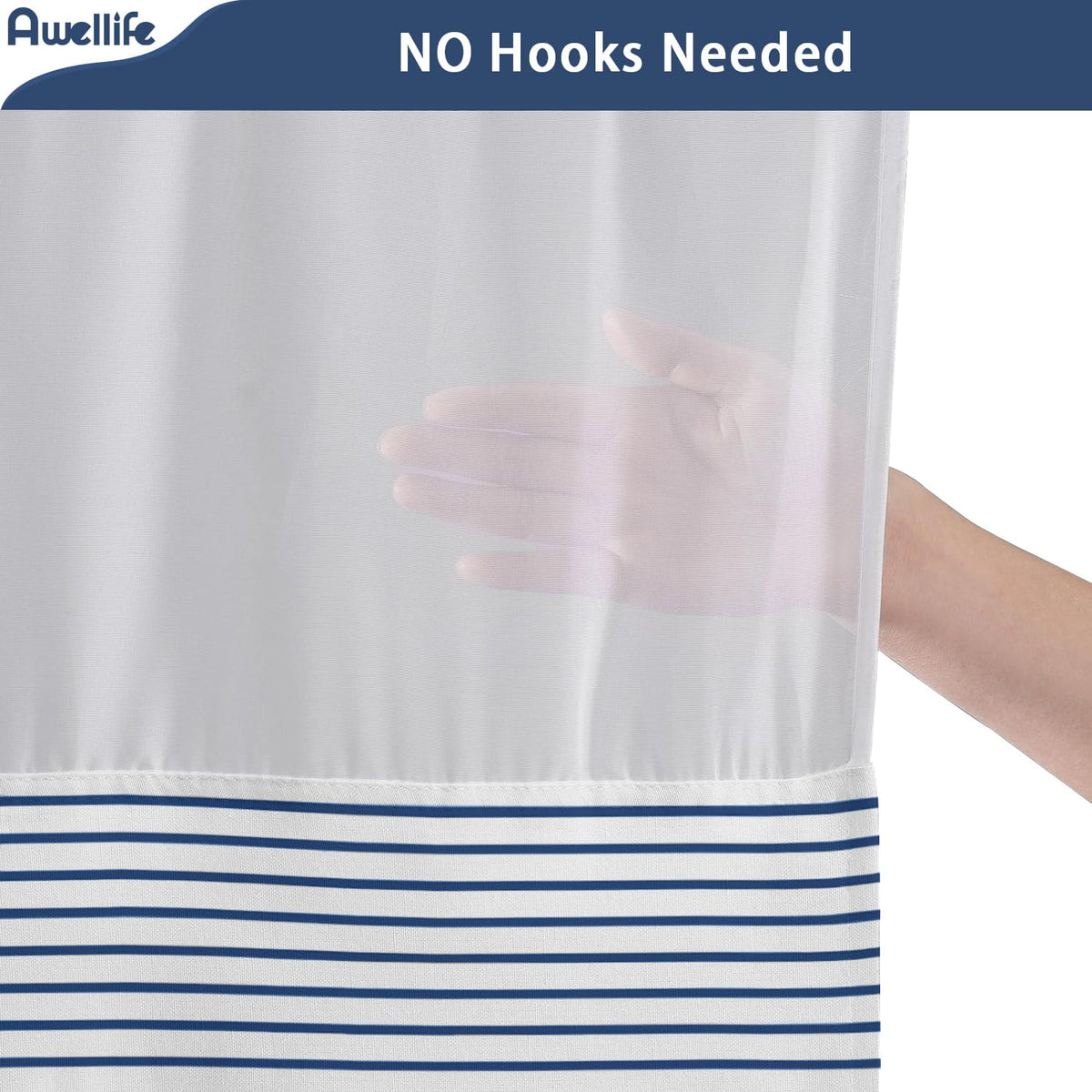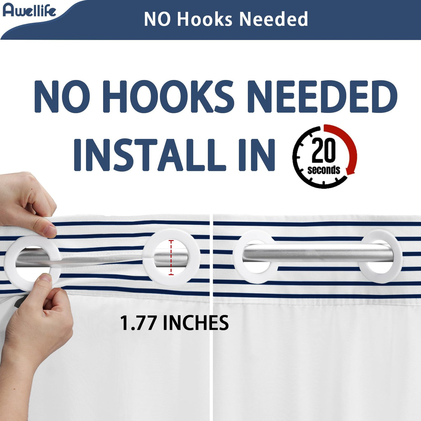 Awellife No Hook Shower Curtain With Snap In Liner Set Cotton And Linen Blend Shower Curtain For Bathroom Boho Navy Striped (No