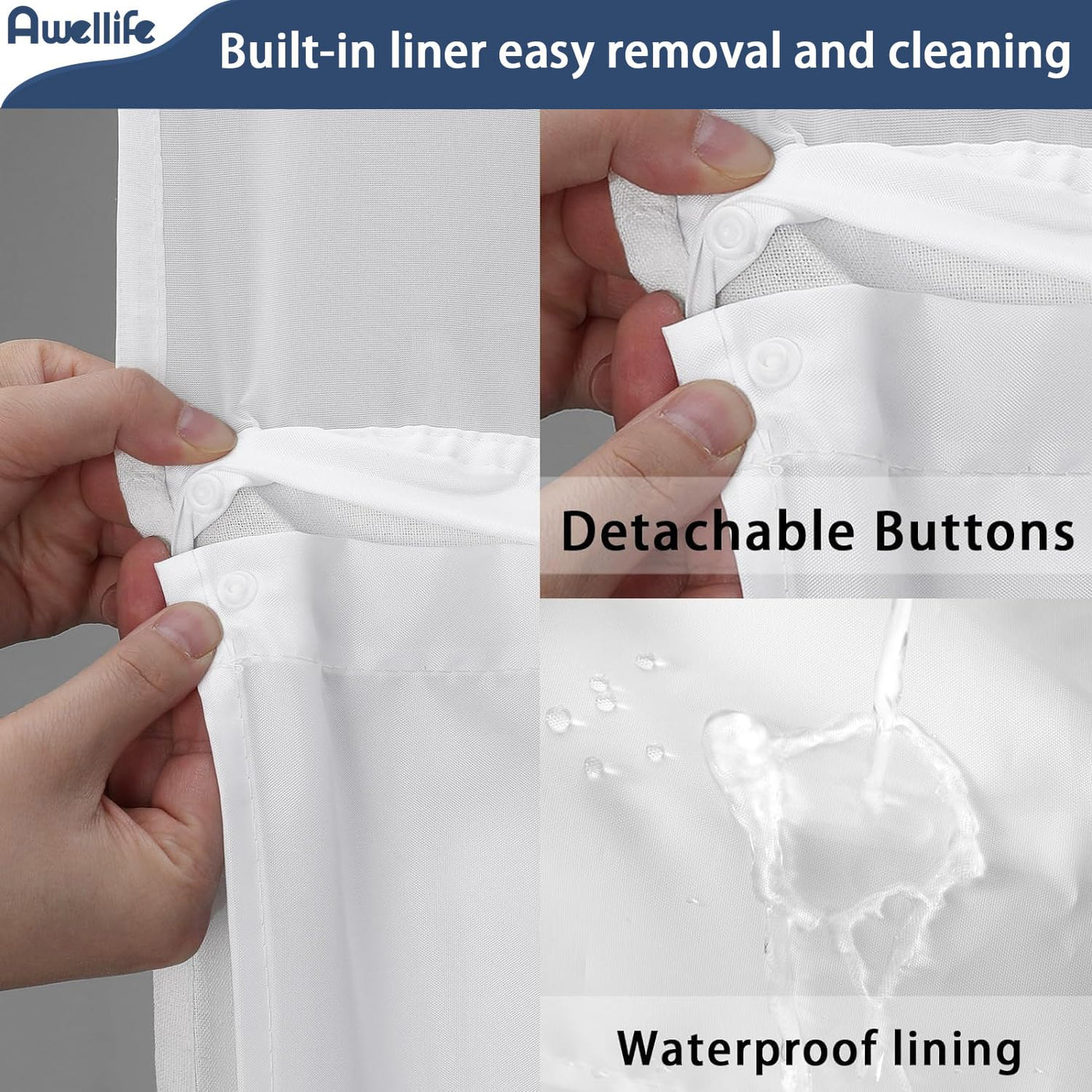 - Q: What materials is the shower curtain made from? A: The Awellife shower curtain is made from a blend of cotton and linen, providing a durable and stylish option for your bathroom.