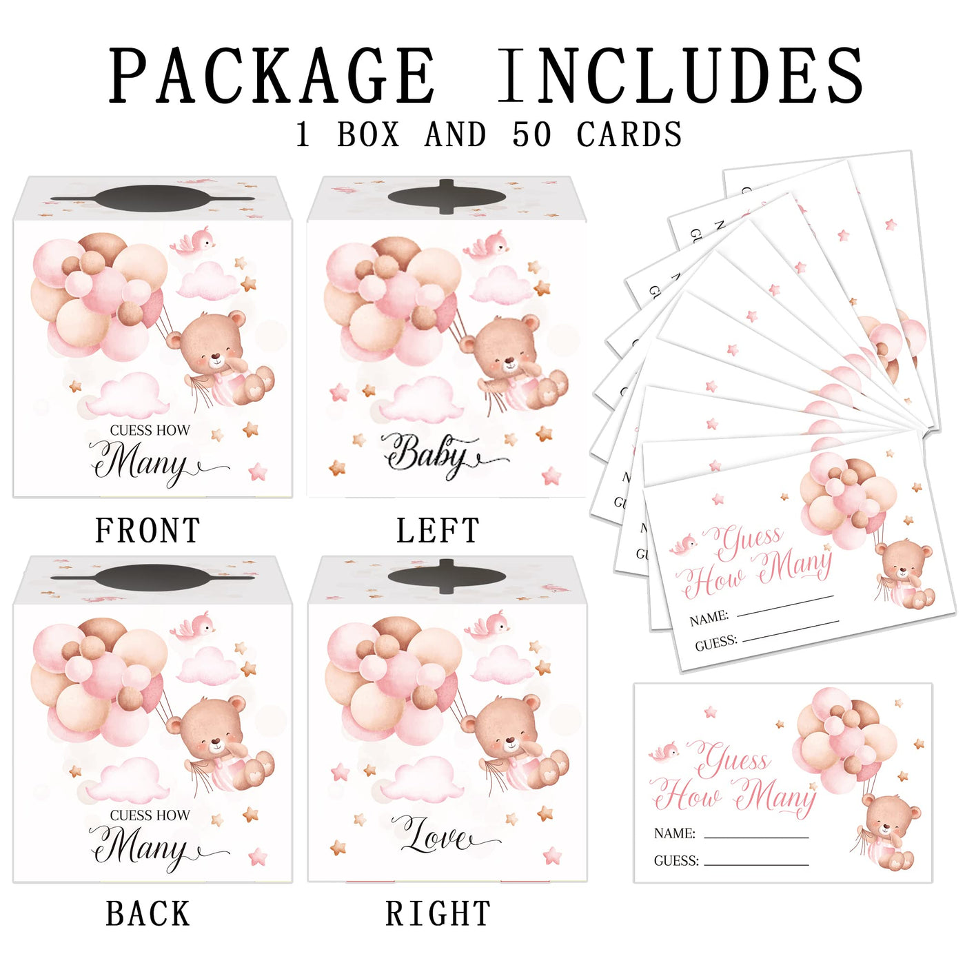Azbuk Balloon Bears Baby Shower Game Cards With Box, Guess How Many, Baby Shower Game With Box And 50 Guessing Cards, Baby Showe