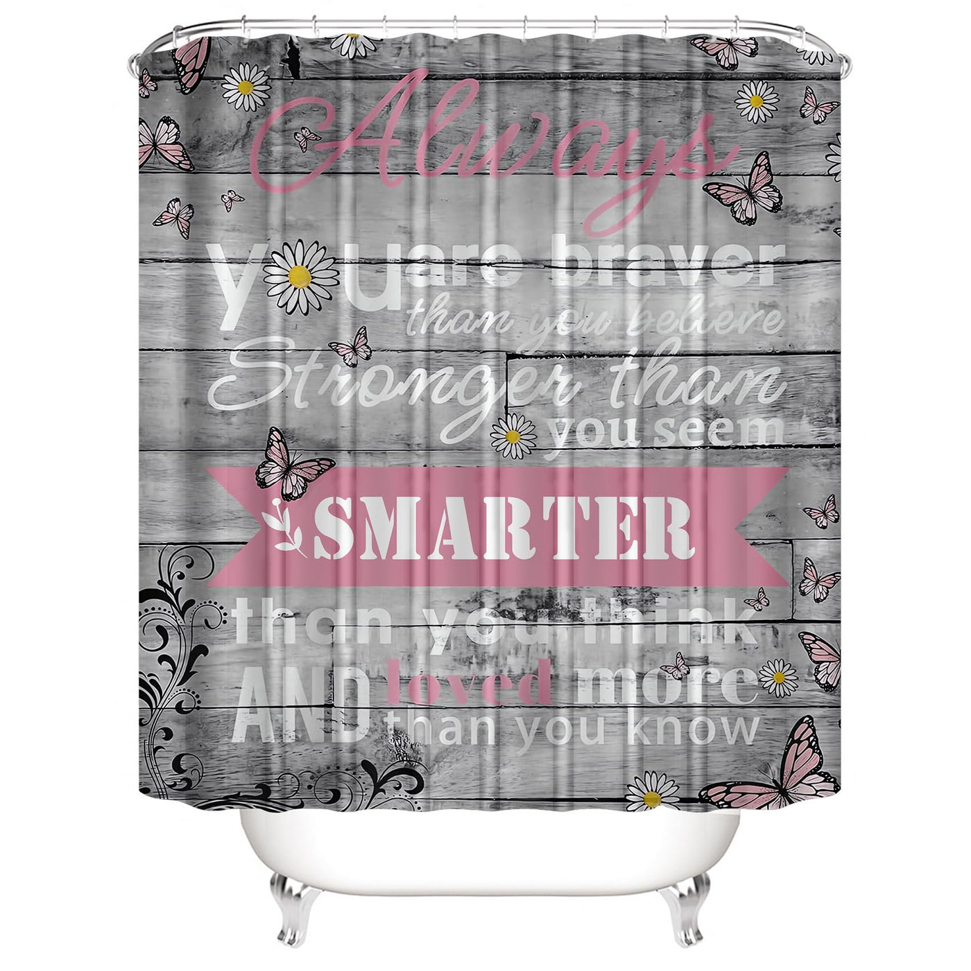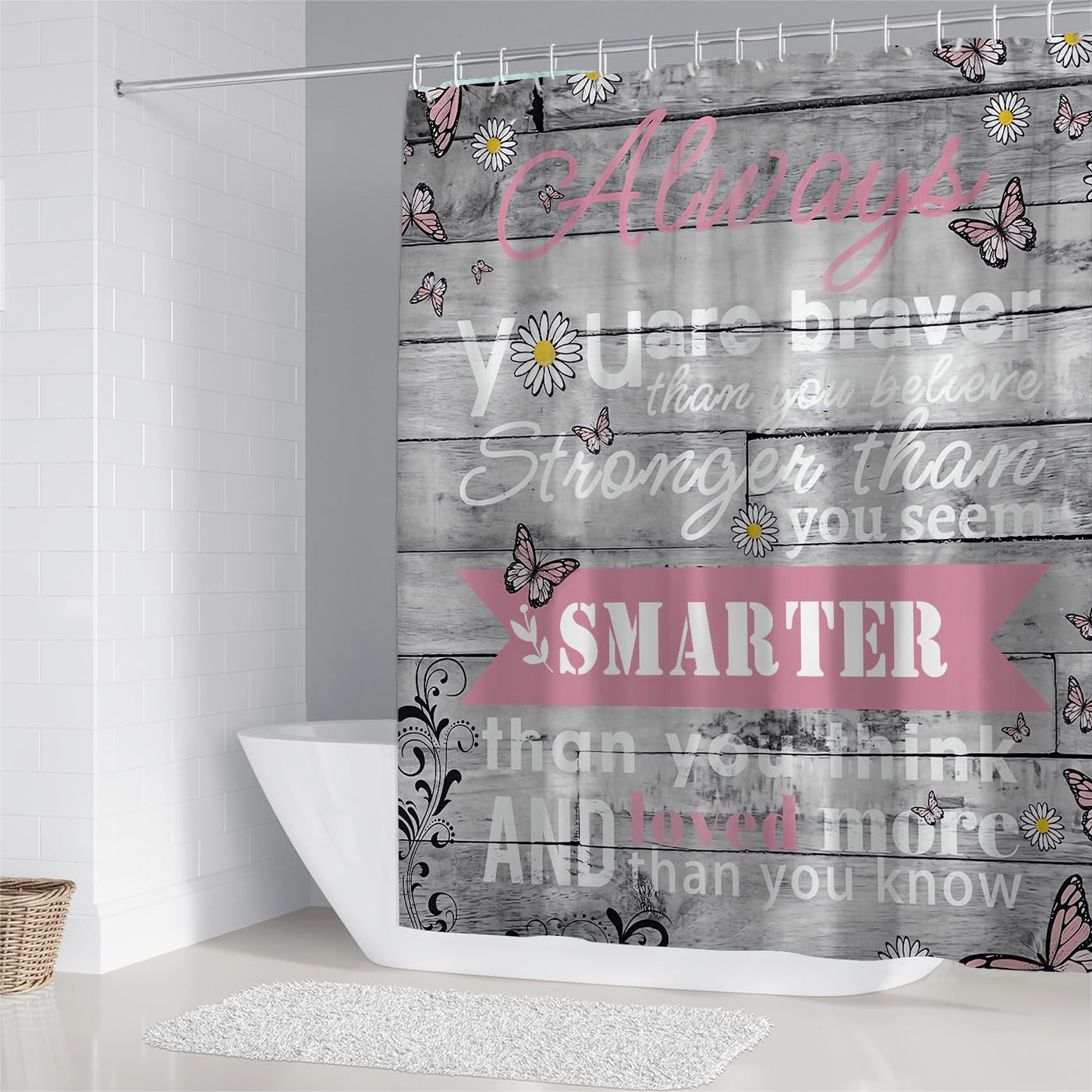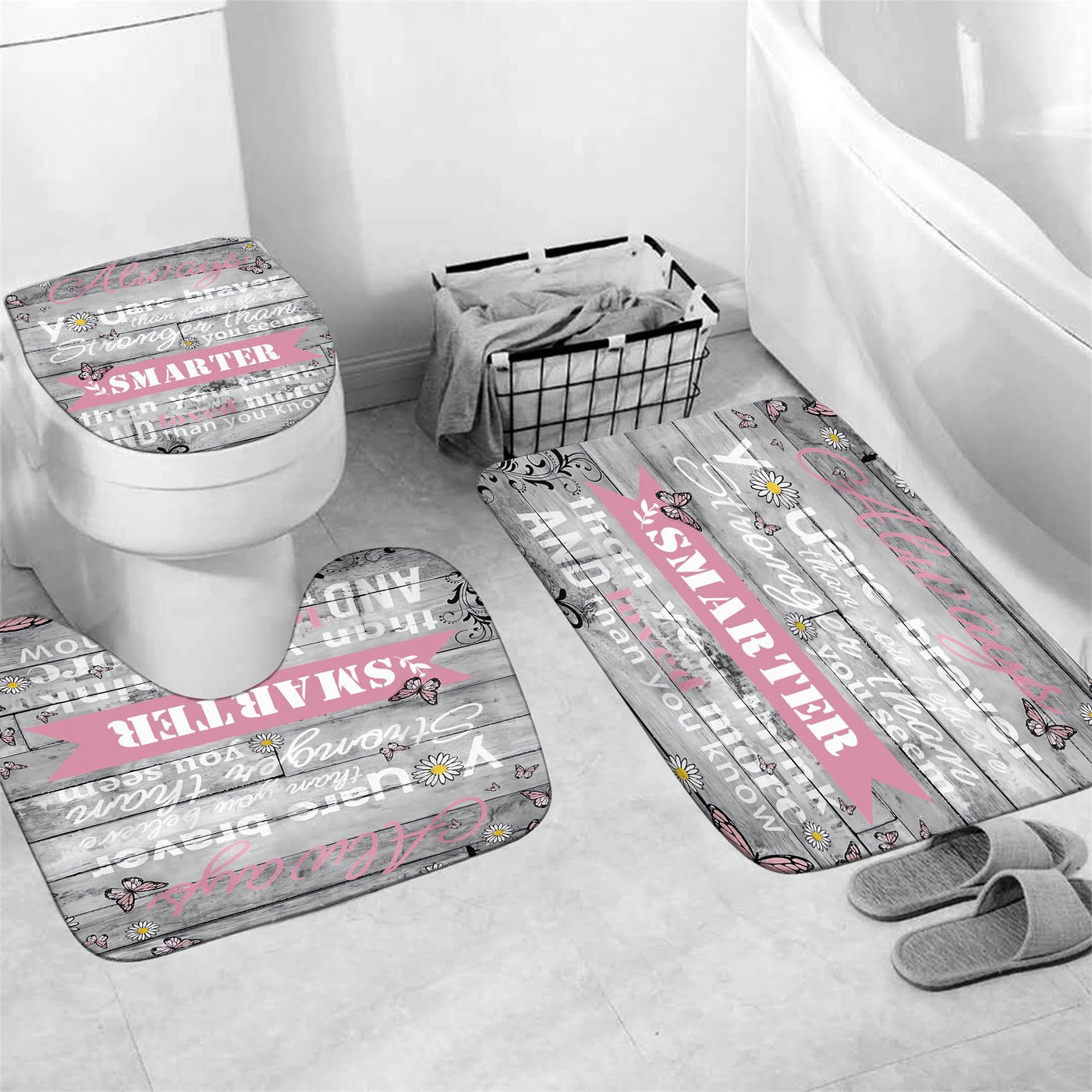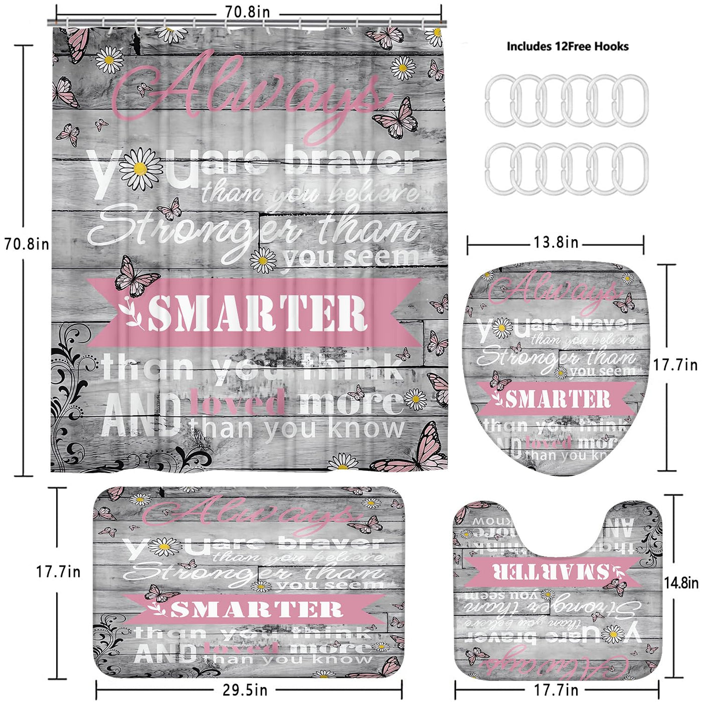 Azhm 4Pcs Inspirational Quotes Shower Curtain Sets With Rugs Floral Bathroom Decor Set With Shower Curtain And Rugs And Accessor