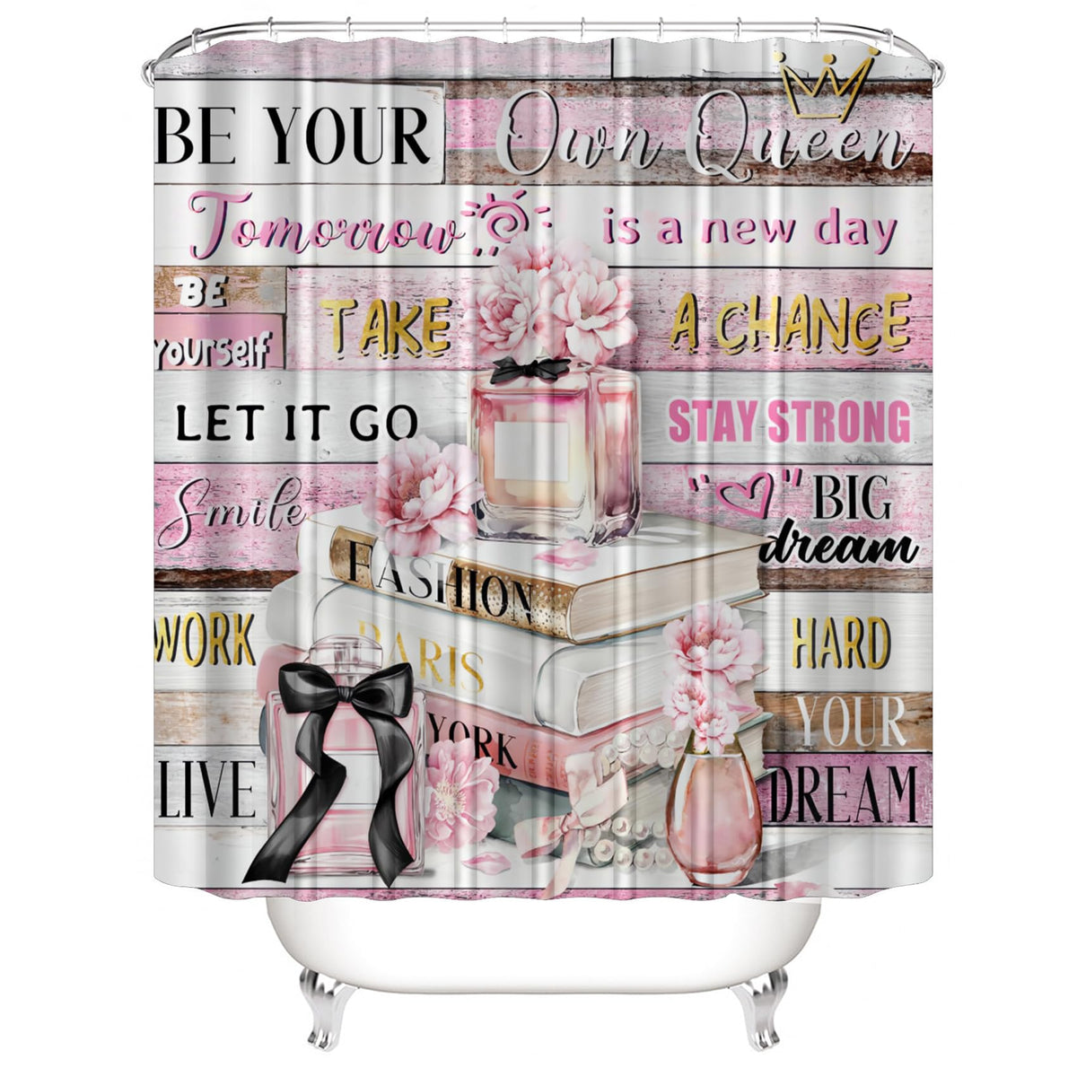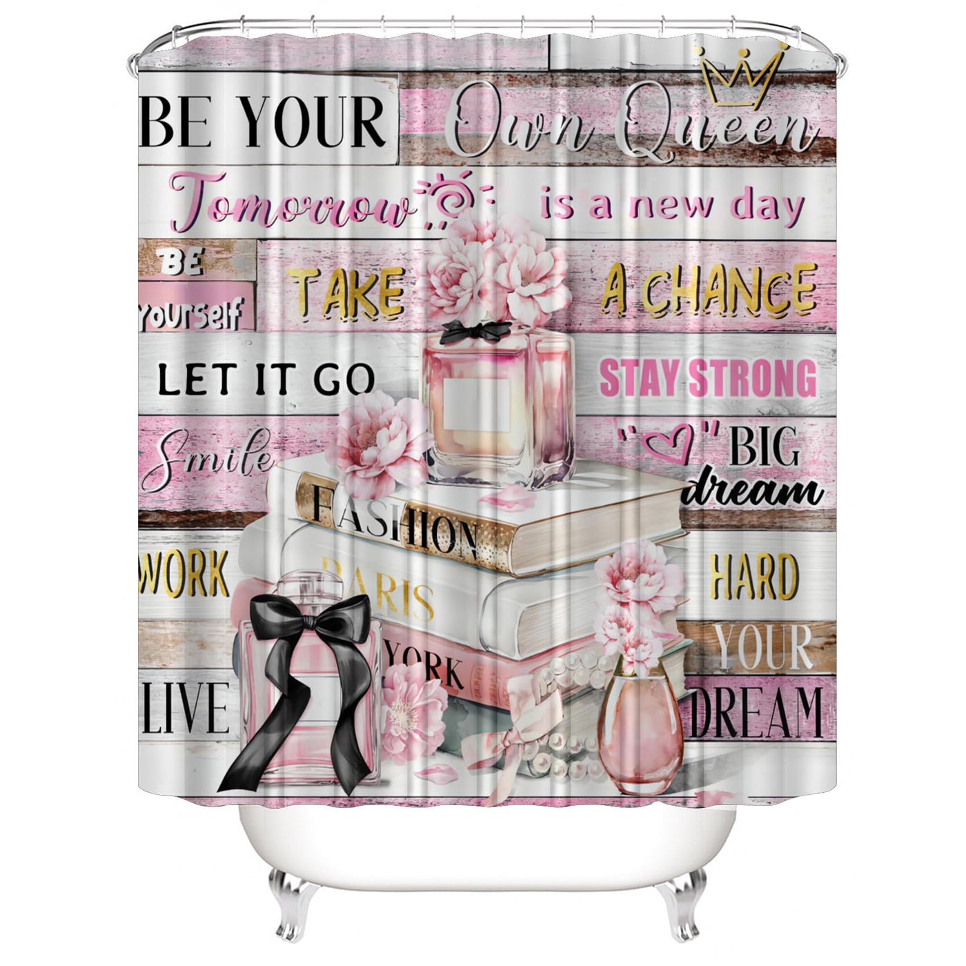 Azhm 4Pcs Shower Curtain Sets Pink Fashion Floral Bathroom Decor Set Inspirational Quotes Bathroom Curtain Shower Set With Rugs