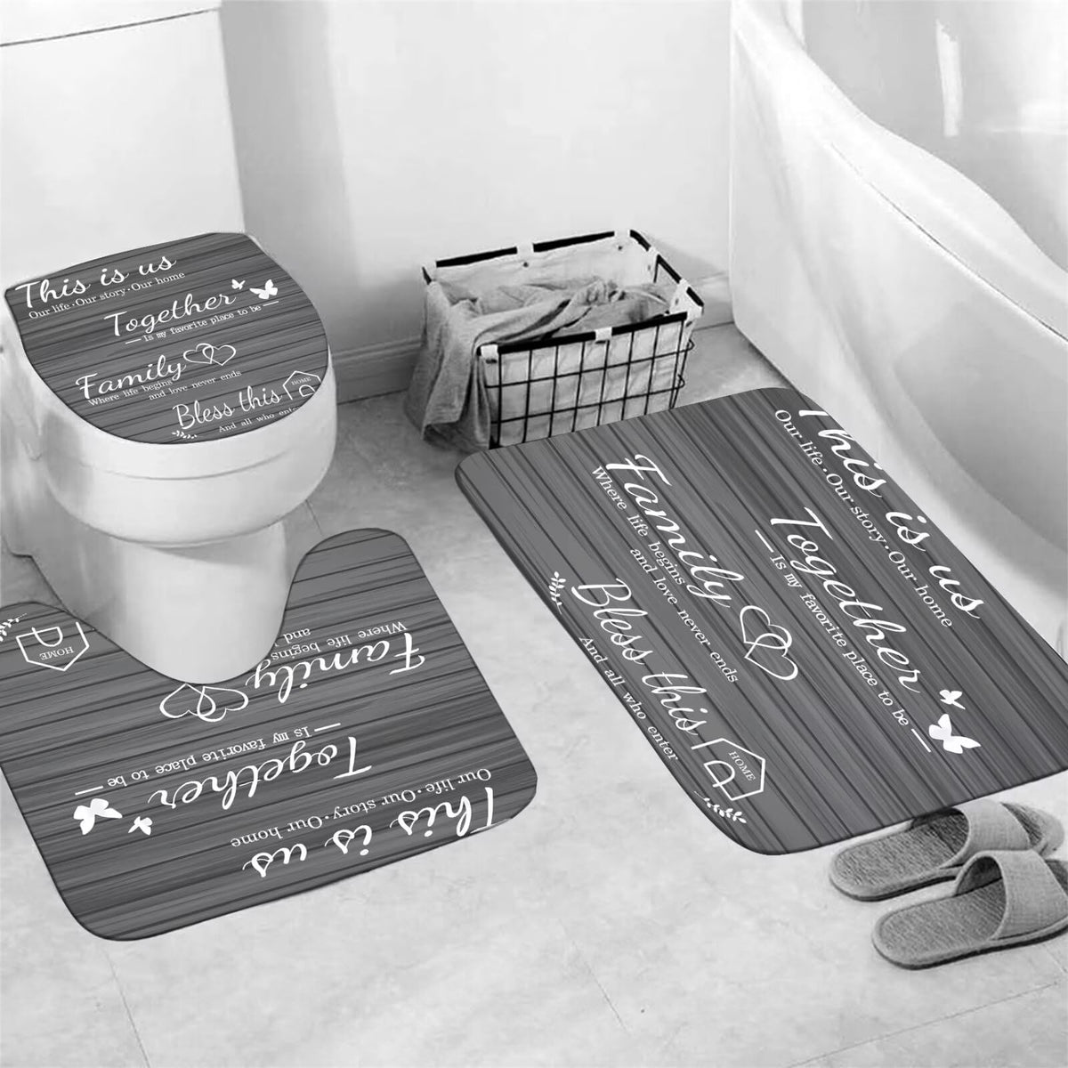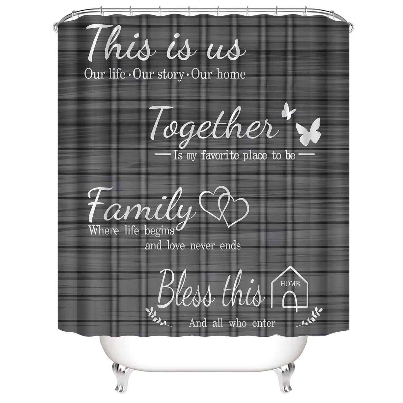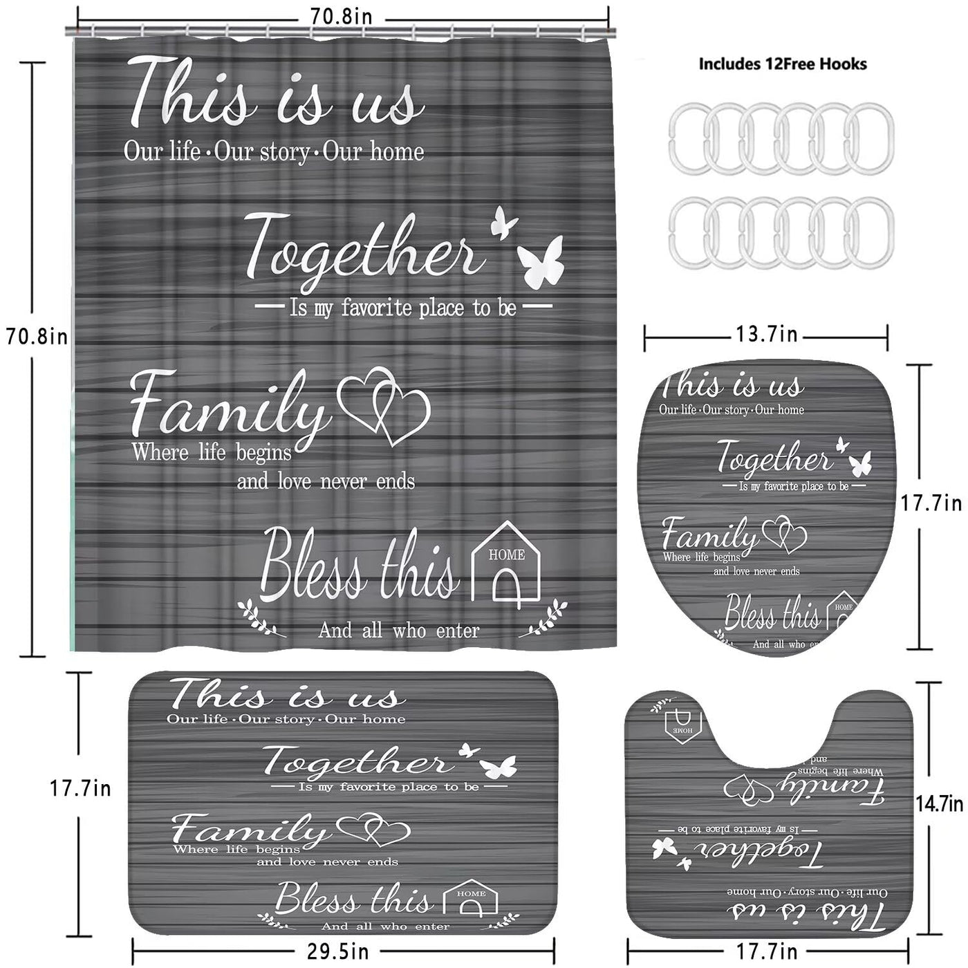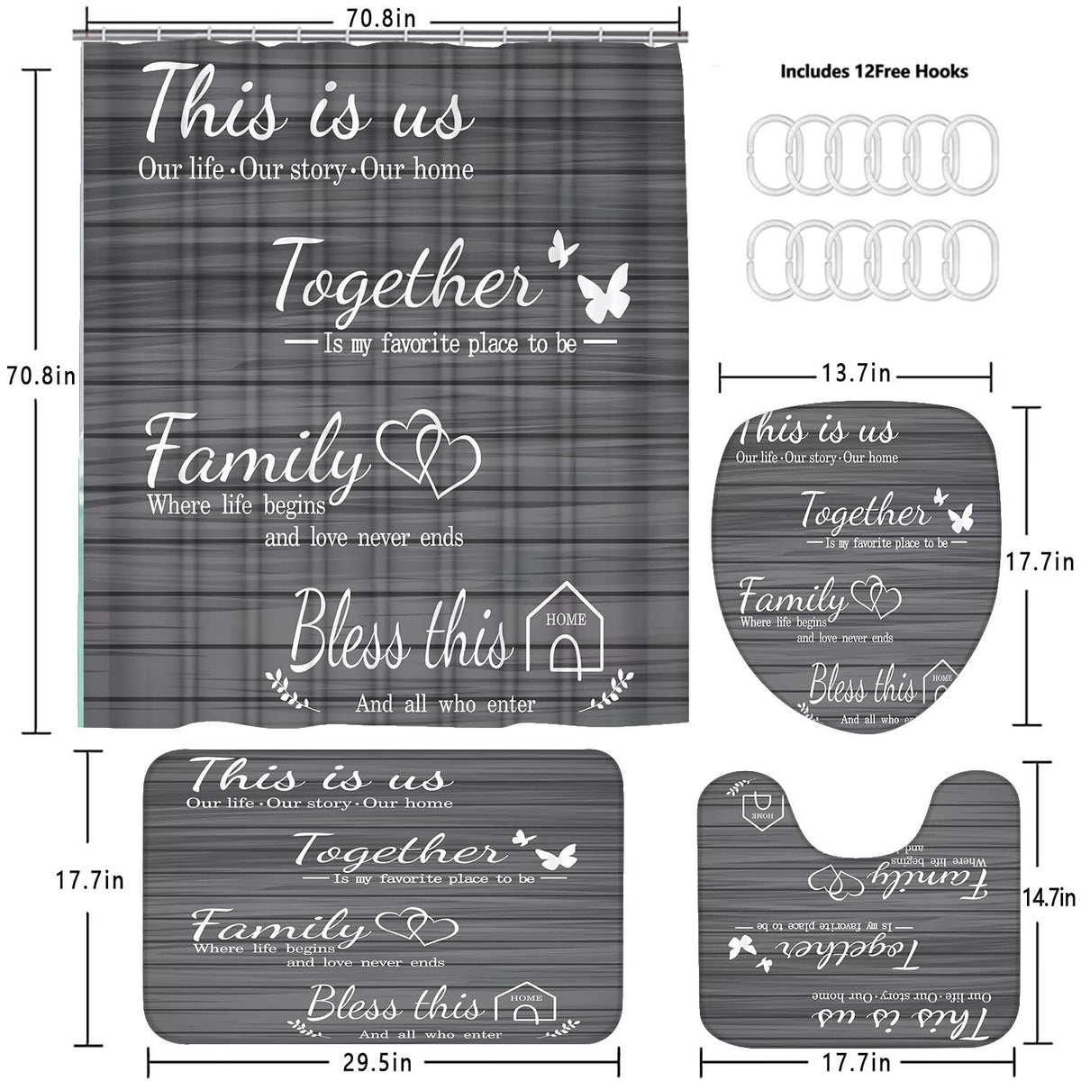 Azhm Family Shower Curtain Set Gray Home Bathroom Set With Shower Curtain And Rugs And Accessories Bathroom Decor Curtain With 1