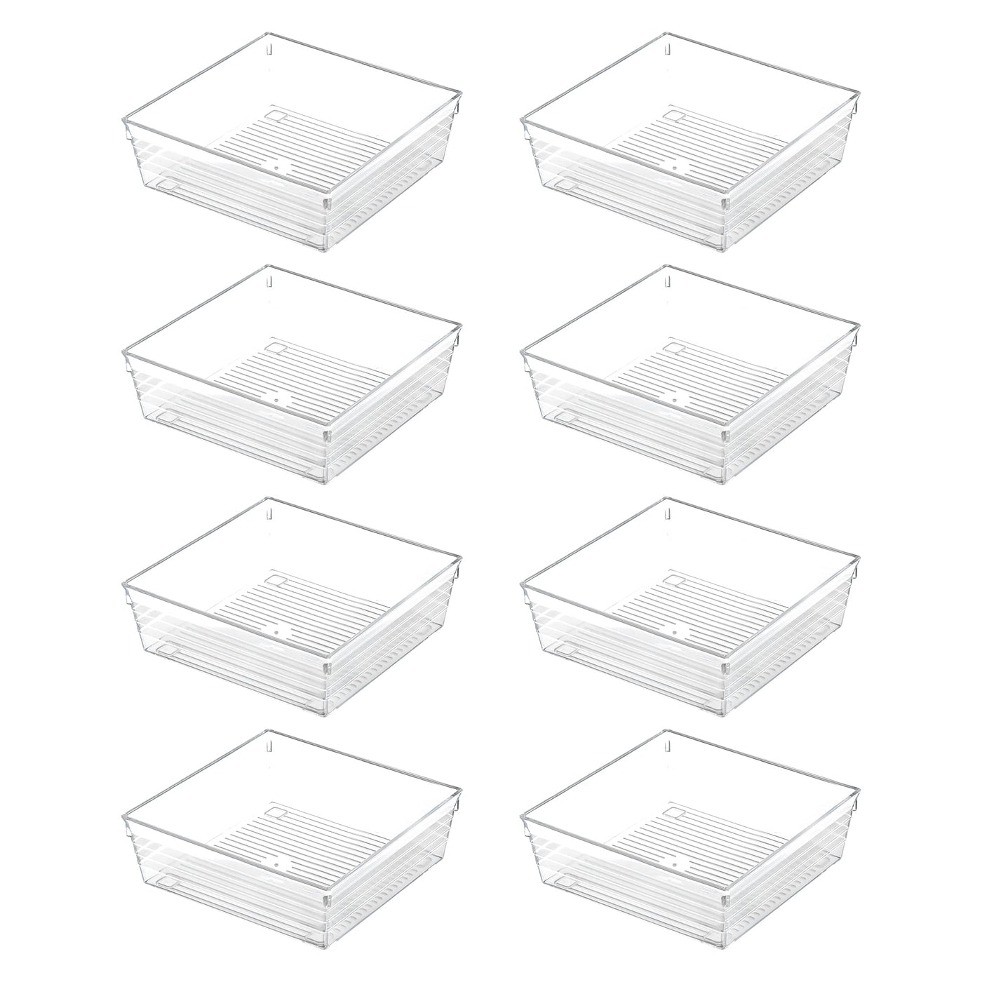 Backerysupply Clear Plastic Drawer Organizer Tray for Vanity Cabinet (6'' 6'' 2'',Set of 8),Storage Tray for Makeup, Kitchen U