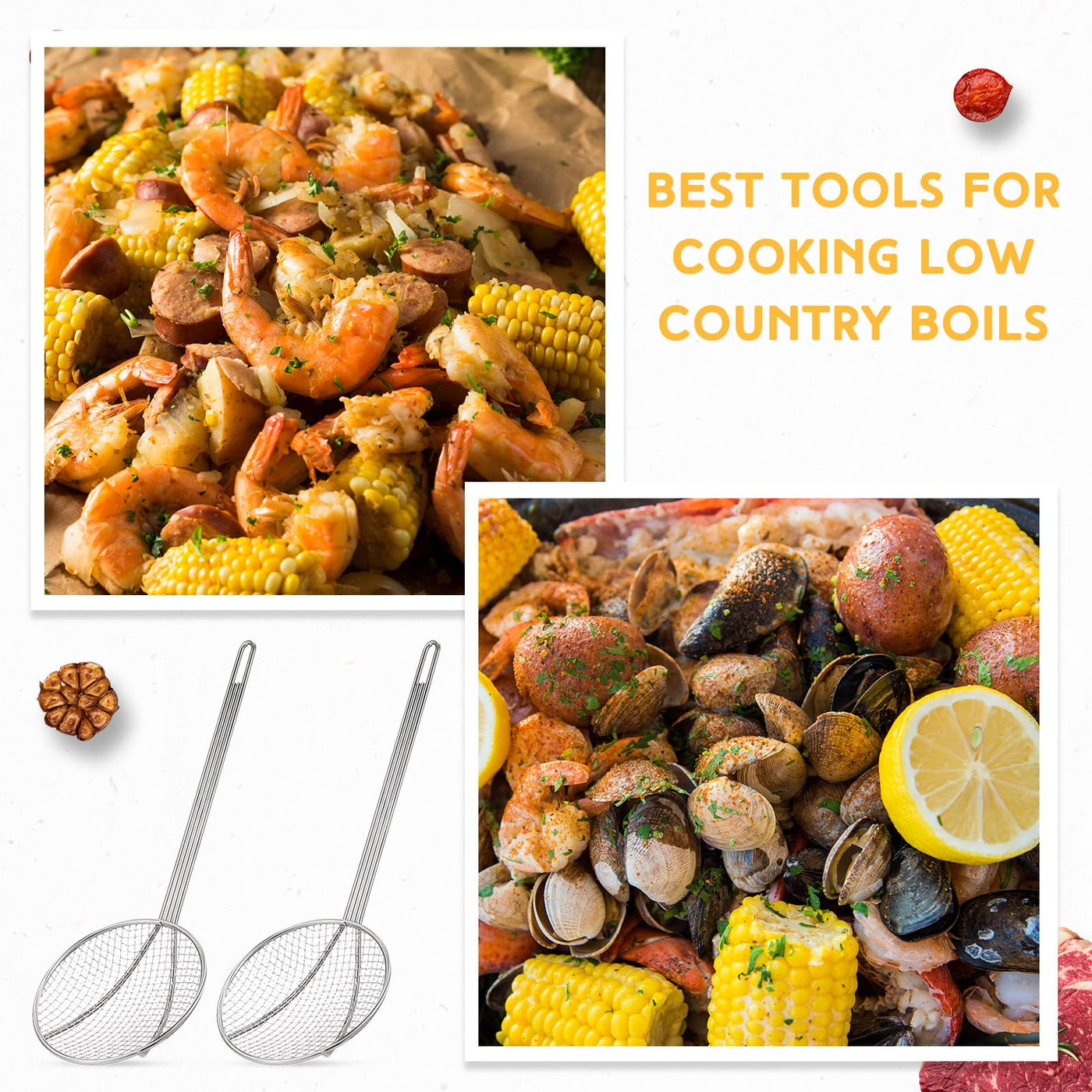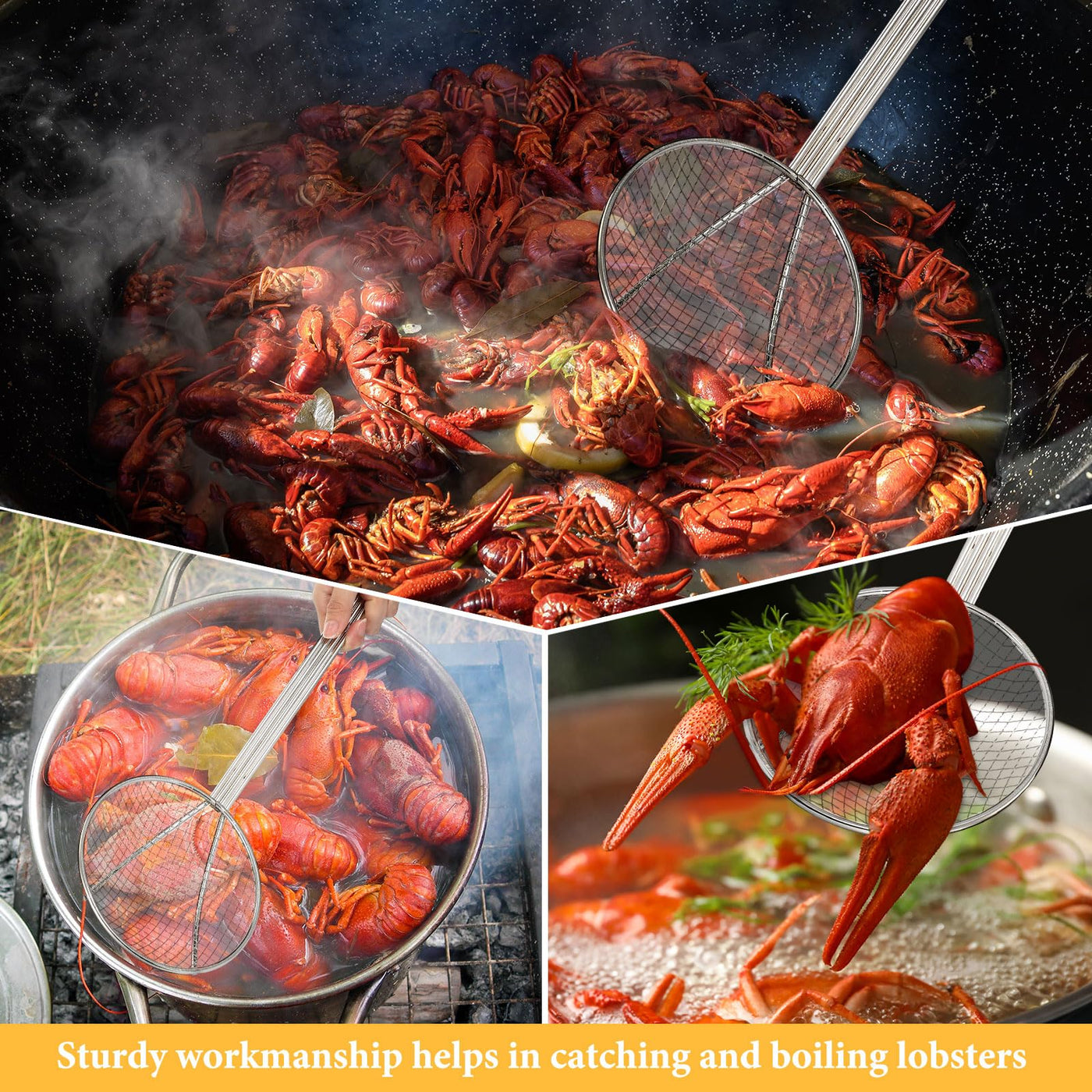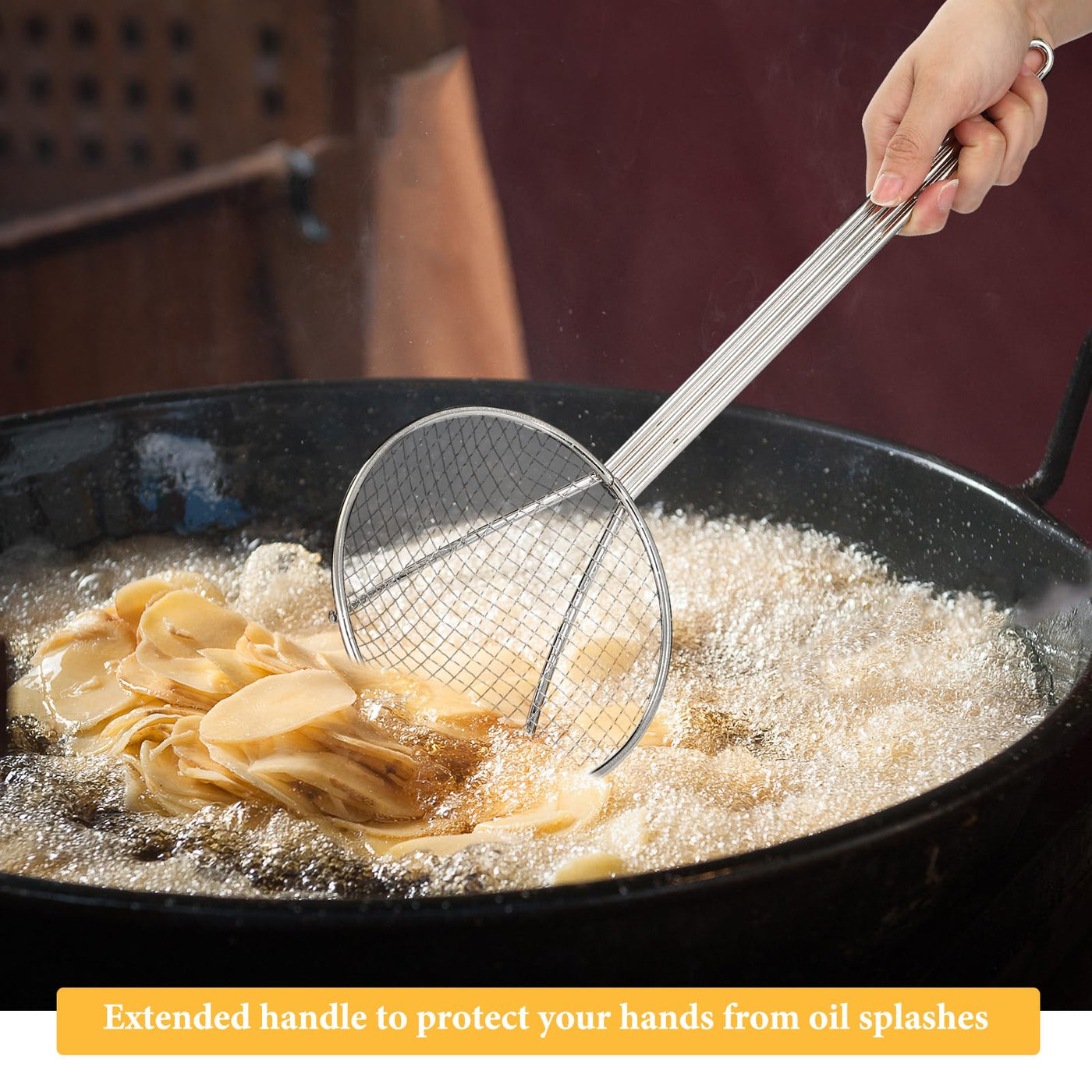 Baderke 2 Pcs 16 Inch Round Nickel Plated Wire Skimmer Stainless Steel Food Strainer Skimmer Spoon Mesh Stirring Fryer Skimmer W