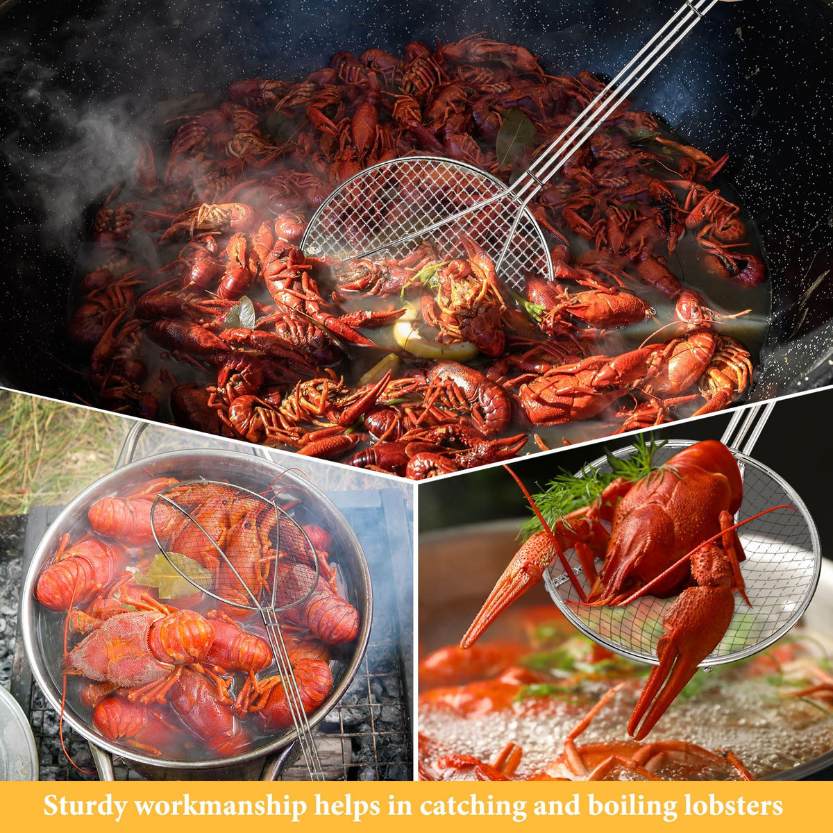 • Q: Does the skimmer come with any usage instructions? A: While specific usage instructions are not included, the skimmer is straightforward to use for various cooking tasks such as frying and draining.