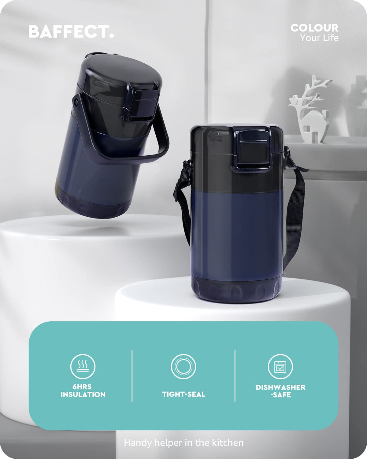 - Q: How long can the Baffect thermos keep food hot? A: The Baffect thermos can keep your homemade lunch warm for up to 6 hours.