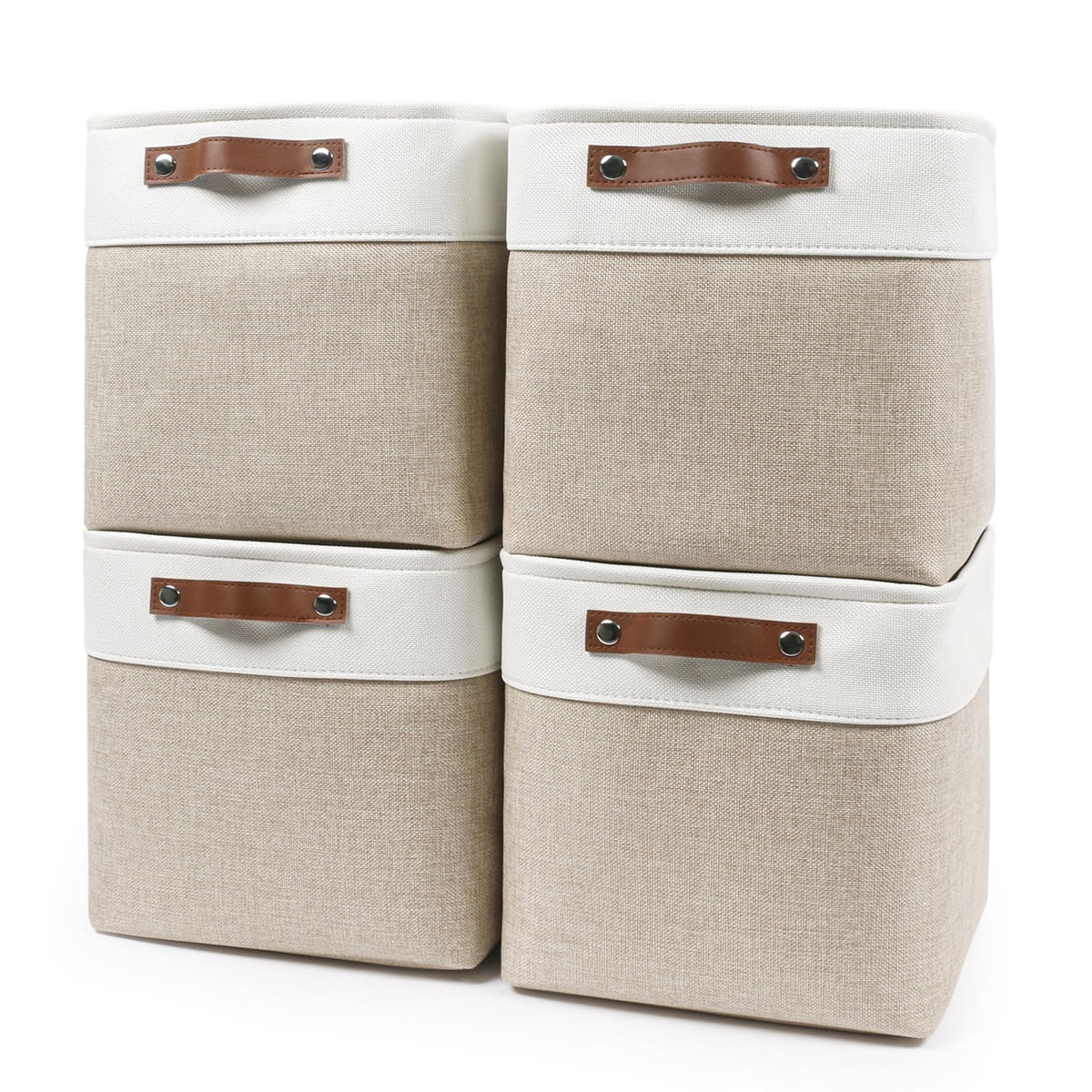 Bagnizer Collapsible Fabric Storage Cubes 11X11 Cube Storage Bins, 4 Pack Closet Baskets Box With Handles For Organizing, Shelf,