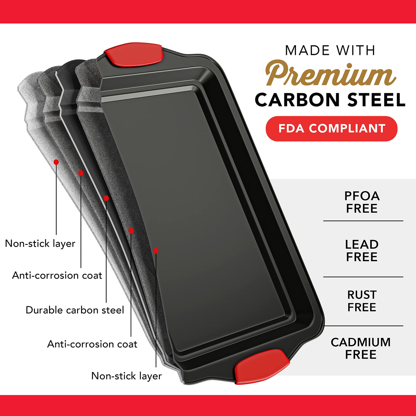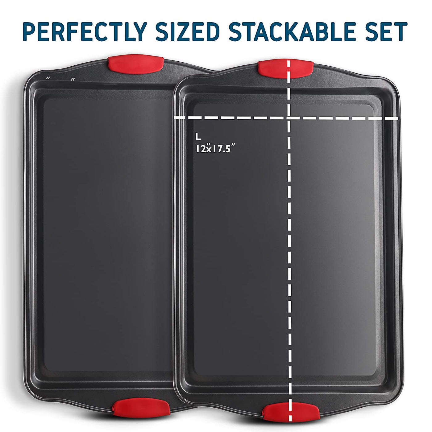 Baking Sheet Set 2-Piece Large Cookie Sheet Set with Silicone Handles Steel Baking Pan Baking Sheets for Oven BPA Free Cookie Sheets for Baking Nonstick Set Half Sheet Pans Black Baking Tray