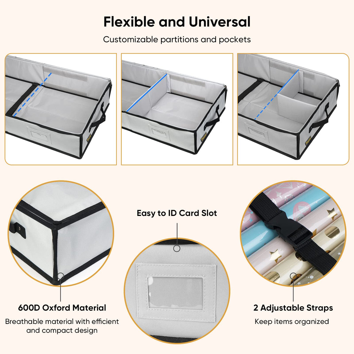 Baleine Christmas Wrapping Paper Storage Organizer With Flexible Partitions And Pockets, 40'' Durable 600D Oxford Fabric Gift Wr