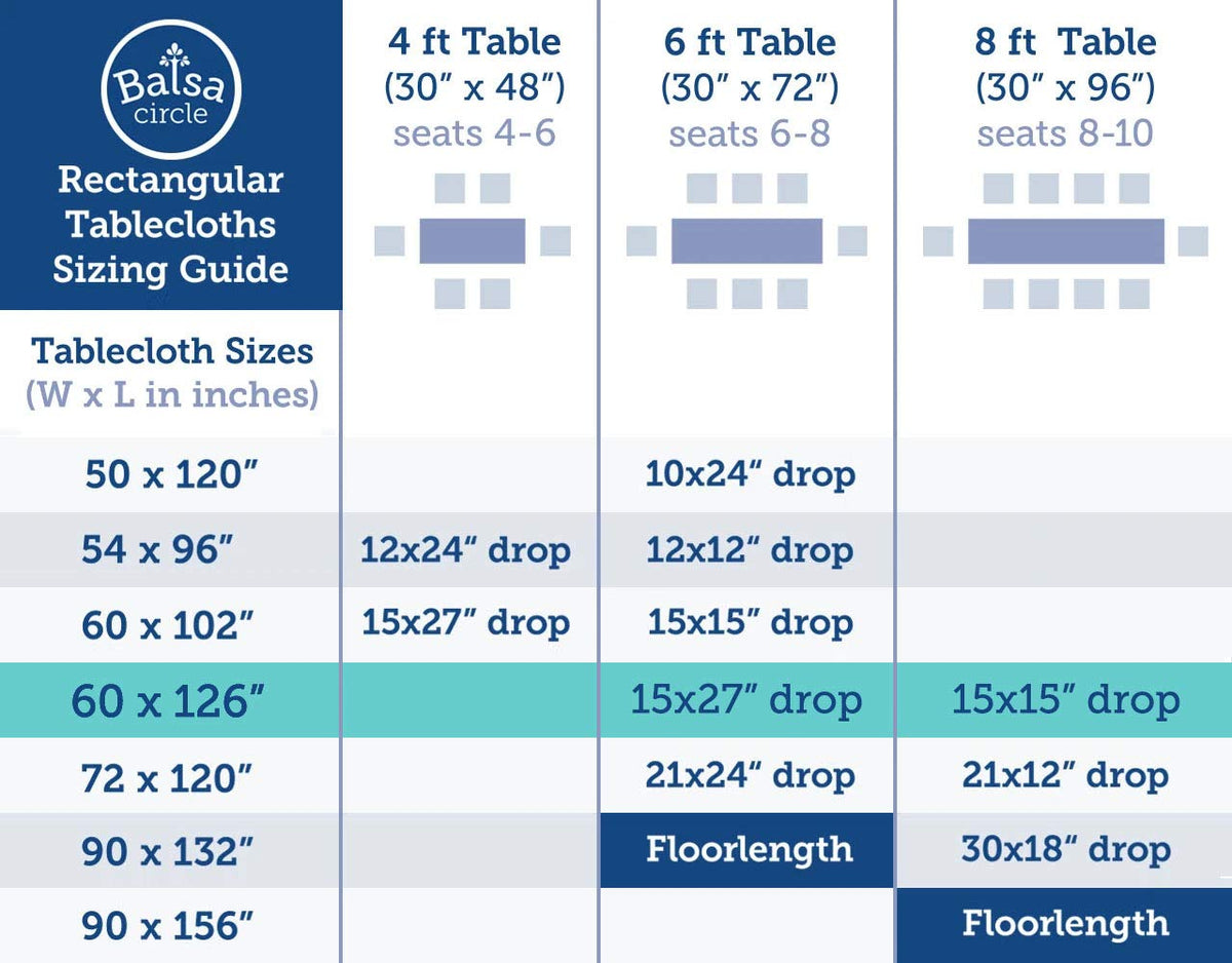 • Q: What are the dimensions of the BalsaCircle burlap tablecloth? A: The BalsaCircle burlap tablecloth measures 60 inches wide by 126 inches long, making it suitable for large tables.