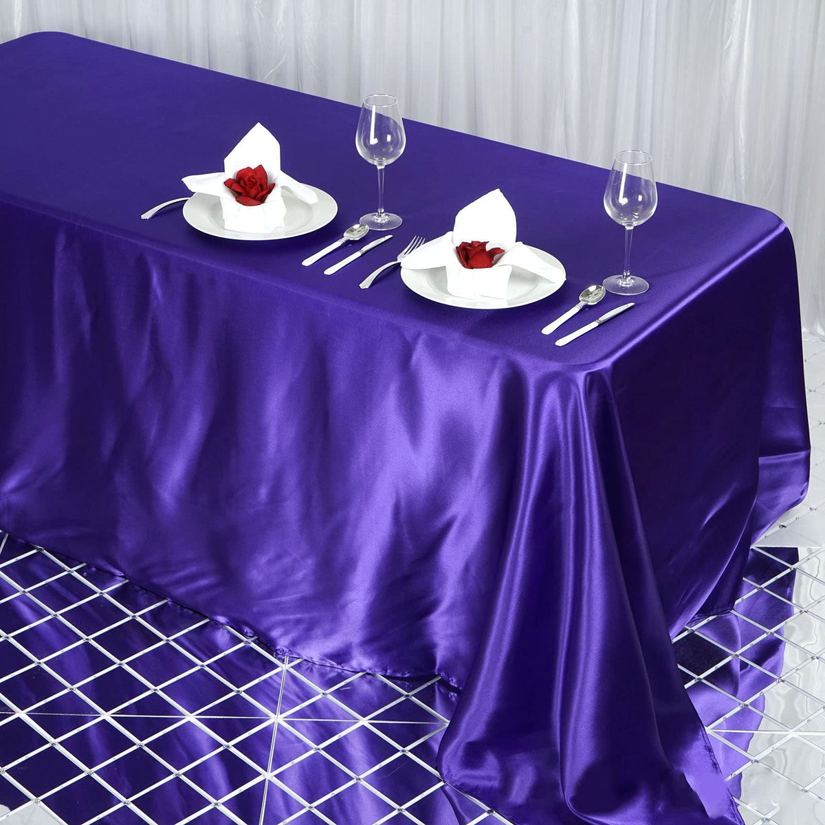 Balsacircle 90X132 Inch Purple Satin Rectangle Tablecloth Table Cover Linens For Wedding Table Cloth Party Reception Events Kitc