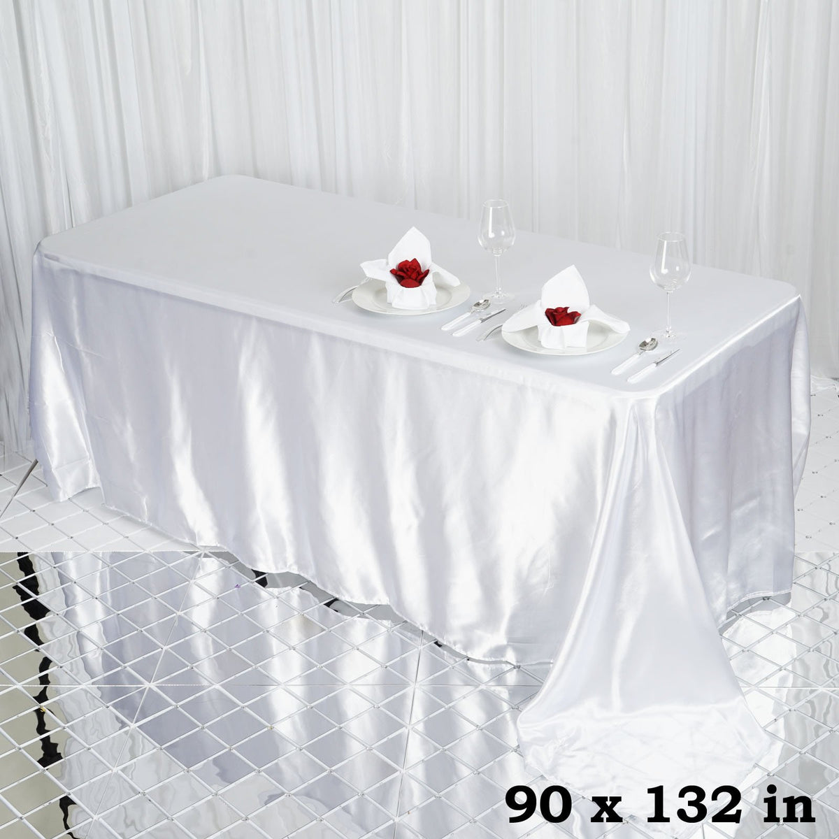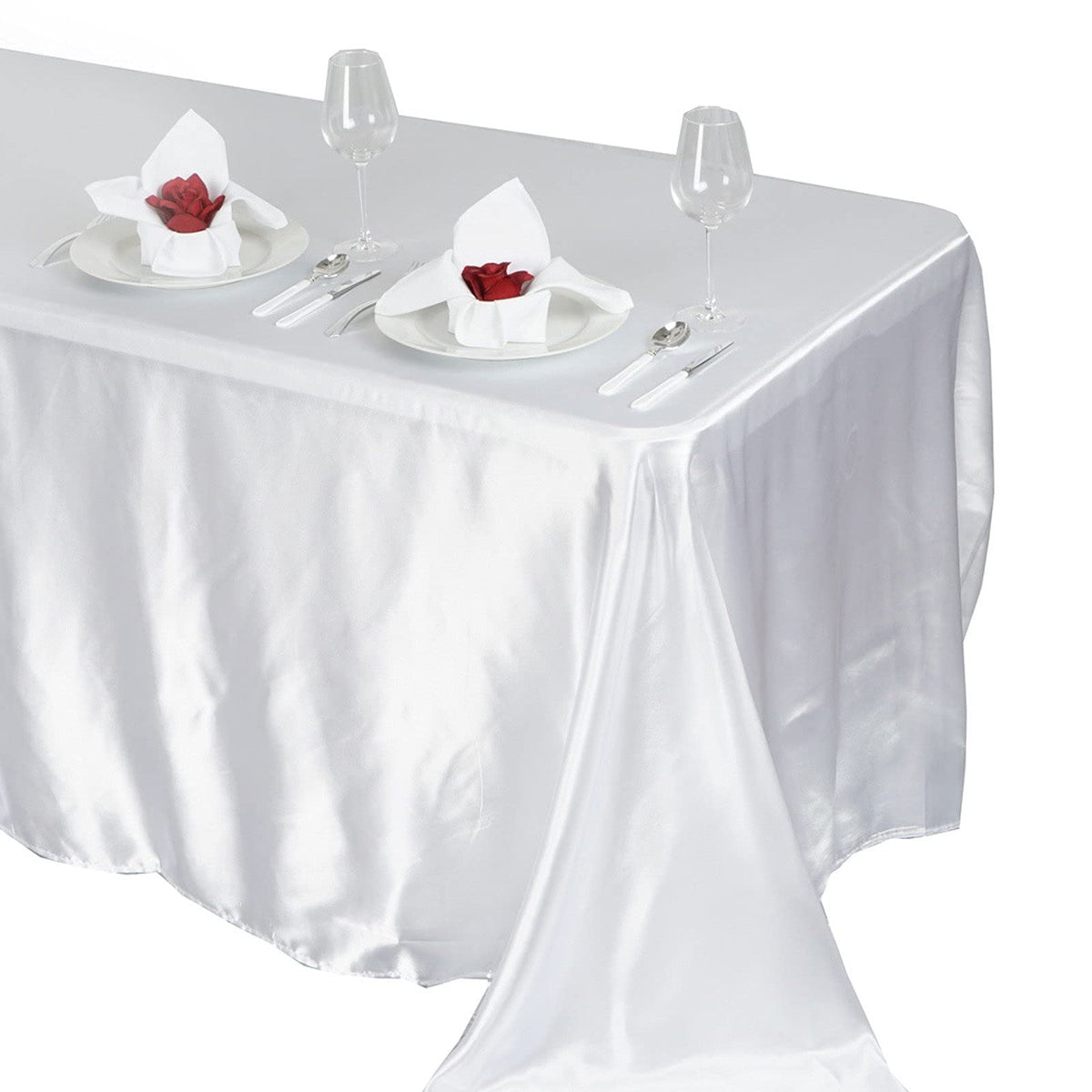 Balsacircle 90X132 Inch White Satin Rectangle Tablecloth Table Cover Linens For Wedding Table Cloth Party Reception Events Kitch