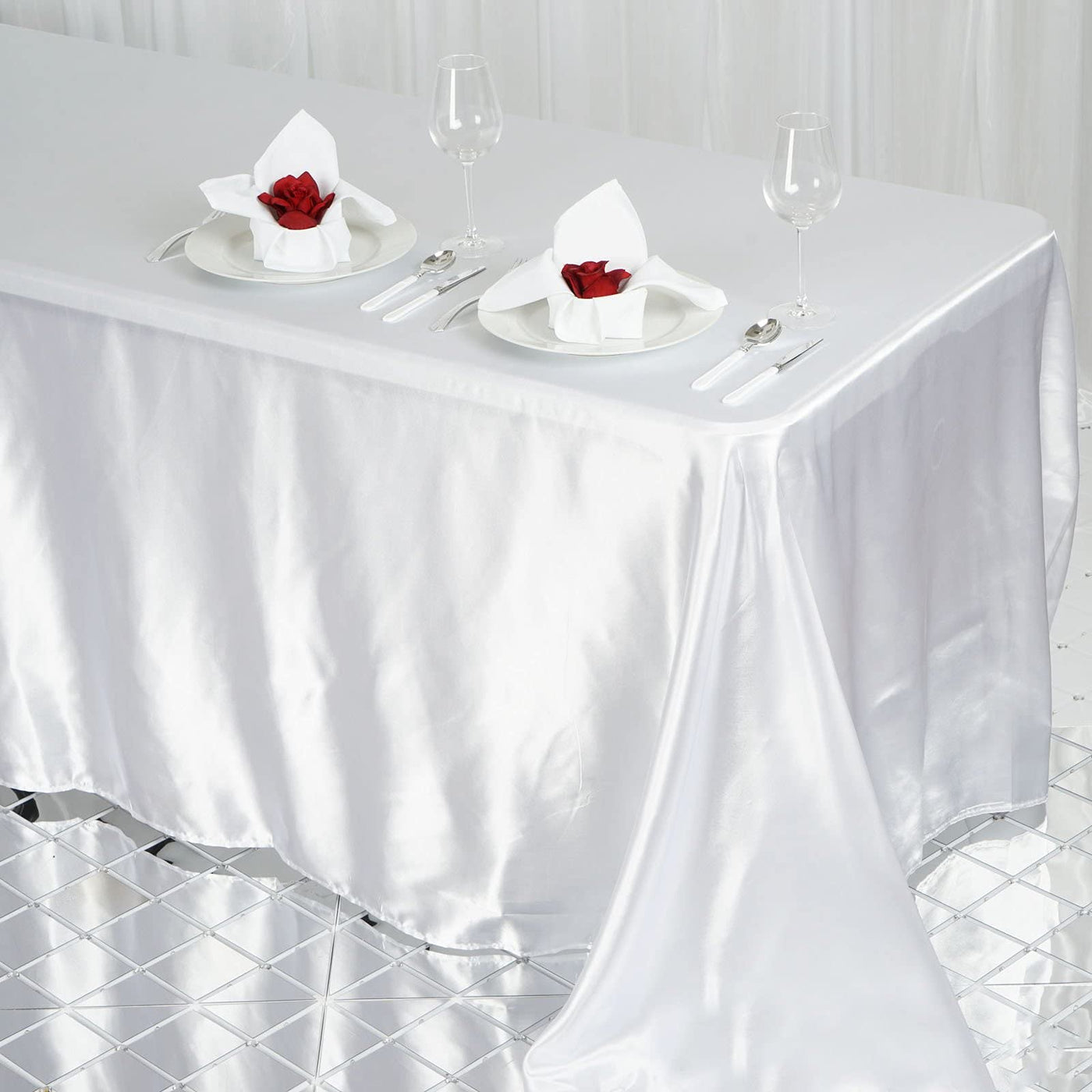 • Q: Is the tablecloth suitable for formal events? A: Yes, the satin tablecloth is designed to create a sophisticated and unique look, making it suitable for weddings, receptions, and other formal events.