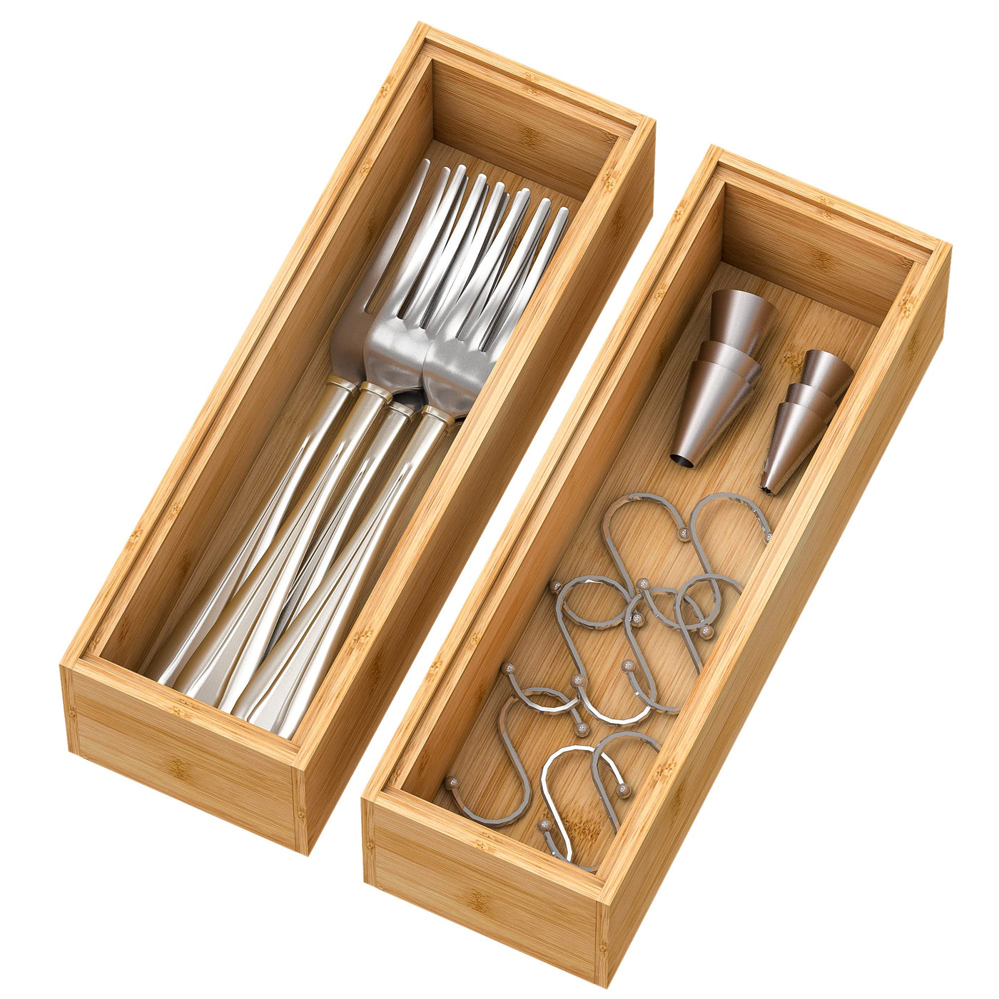 - Q: How many organizers are included in the set? A: The set includes two bamboo drawer organizers.