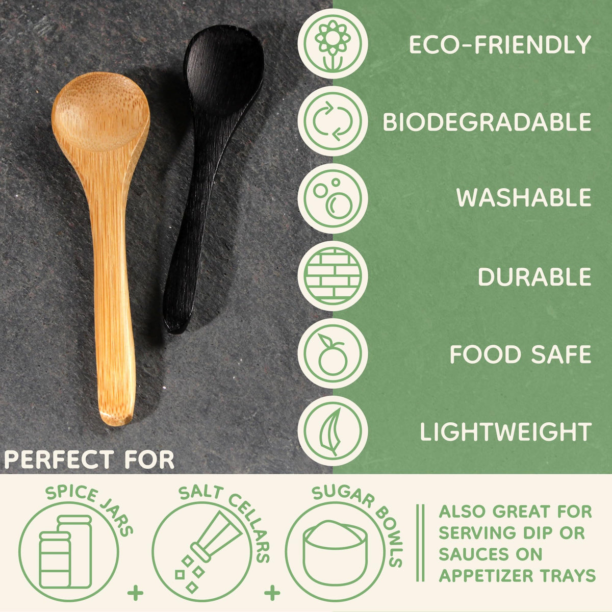 Bamboomn Bamboo Spoons, Mini Salt Spoon/Tiny Wooden Spoons For Spices, 100Pcs Black Oval 3.5''