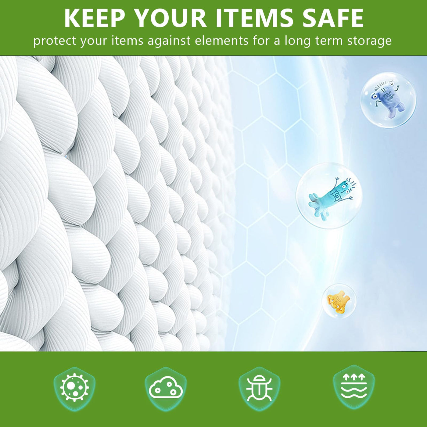 - Q: How do these vacuum storage bags help with organization? A: These bags help optimize space by compressing items, making it easier to organize your wardrobe and store seasonal clothing or bedding.
