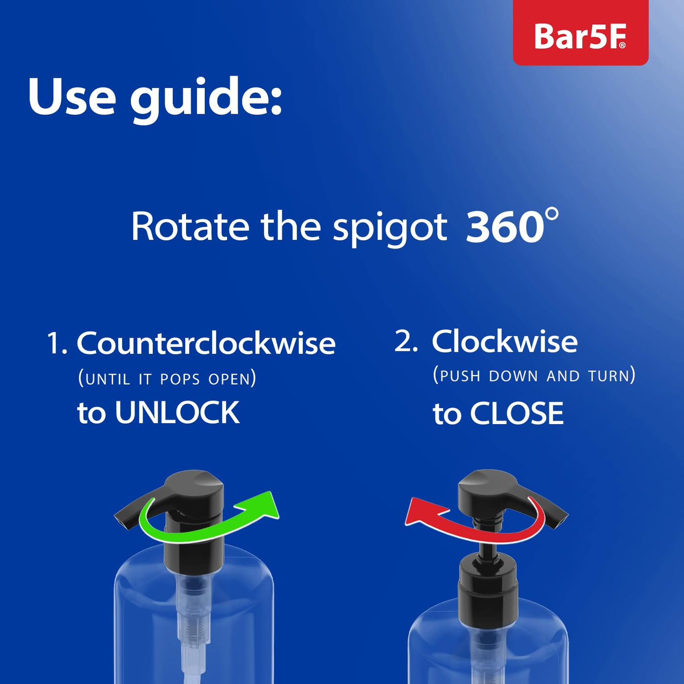 - Q: How does the dispenser pump work? A: The dispenser pump features a lock-down mechanism. To unlock, twist the pump counterclockwise a full turn, and to lock, turn it clockwise a full turn.