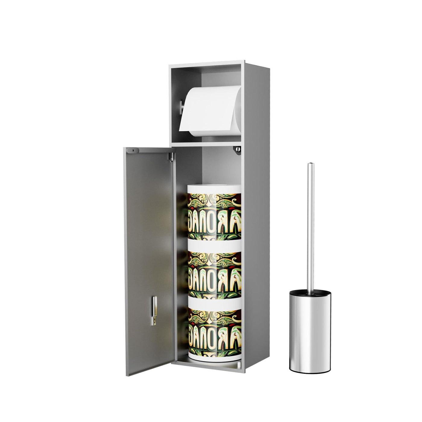 Baronage Recessed Toilet Paper Holder With Toilet Brush, 24 Inch Over-Mounted Wall Toilet Roll Holders, Stainless Steel Toilets