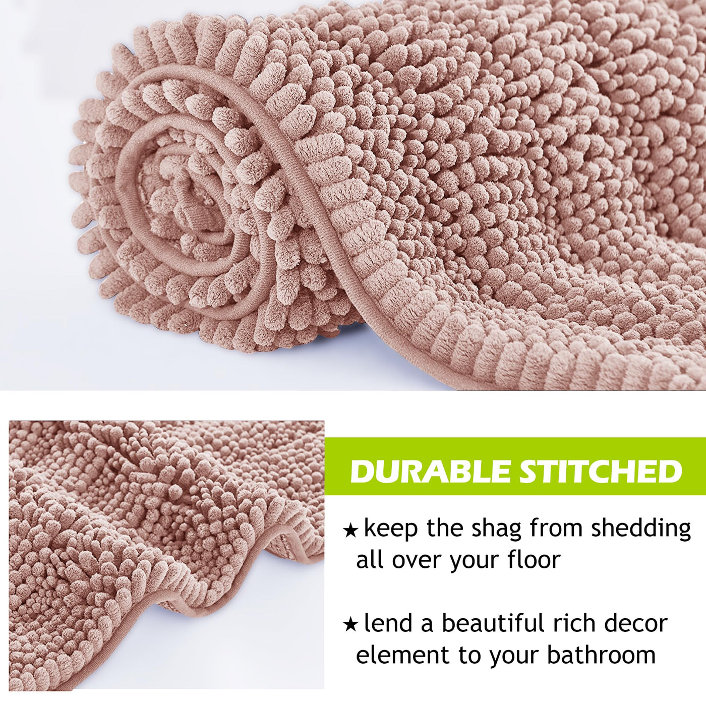 Bath Mat For Bathroom - Soft Shower Rug Farmhouse Quick Drying Washable Absorbent Non-Slip Super Soft Chenile Bathtub Carpet Dec
