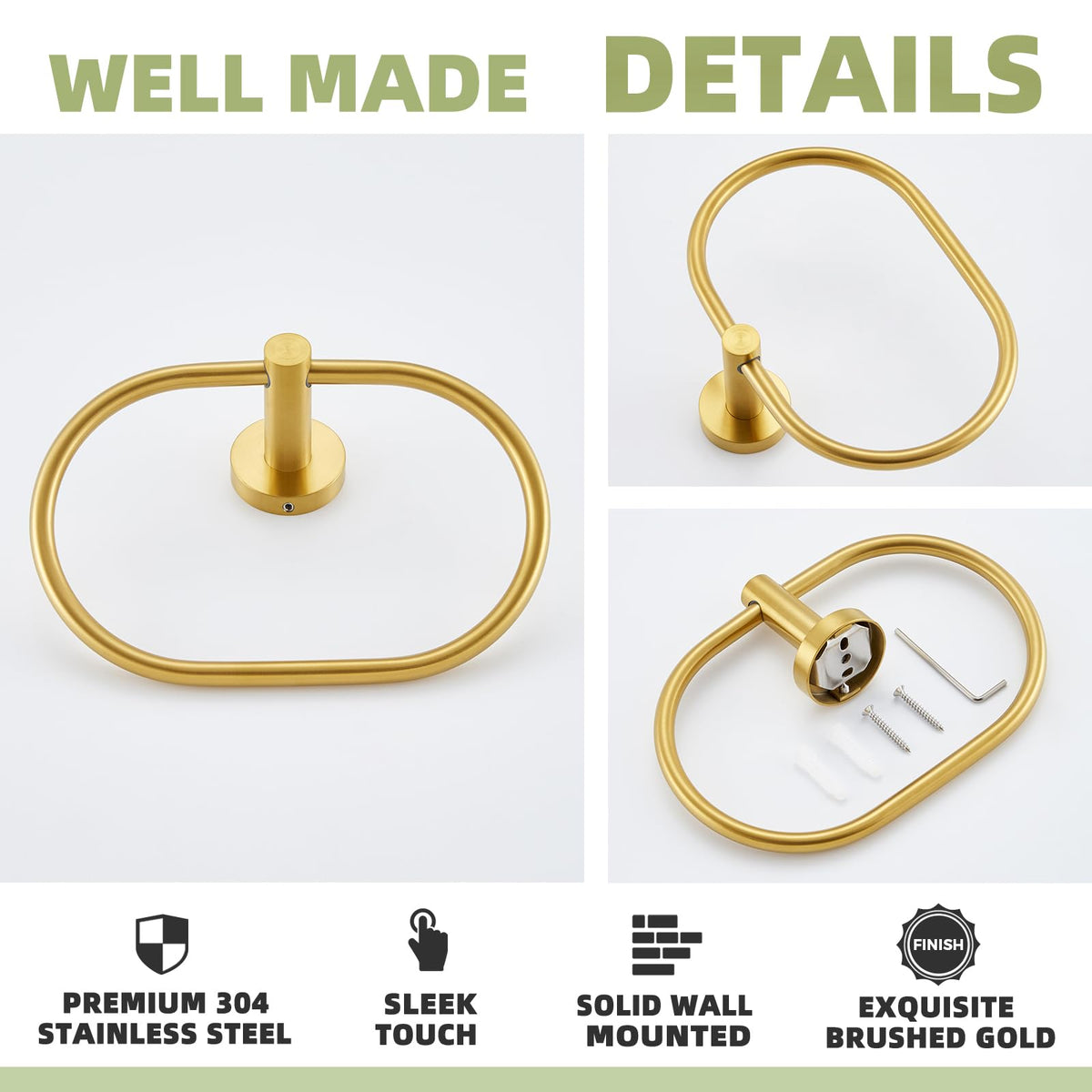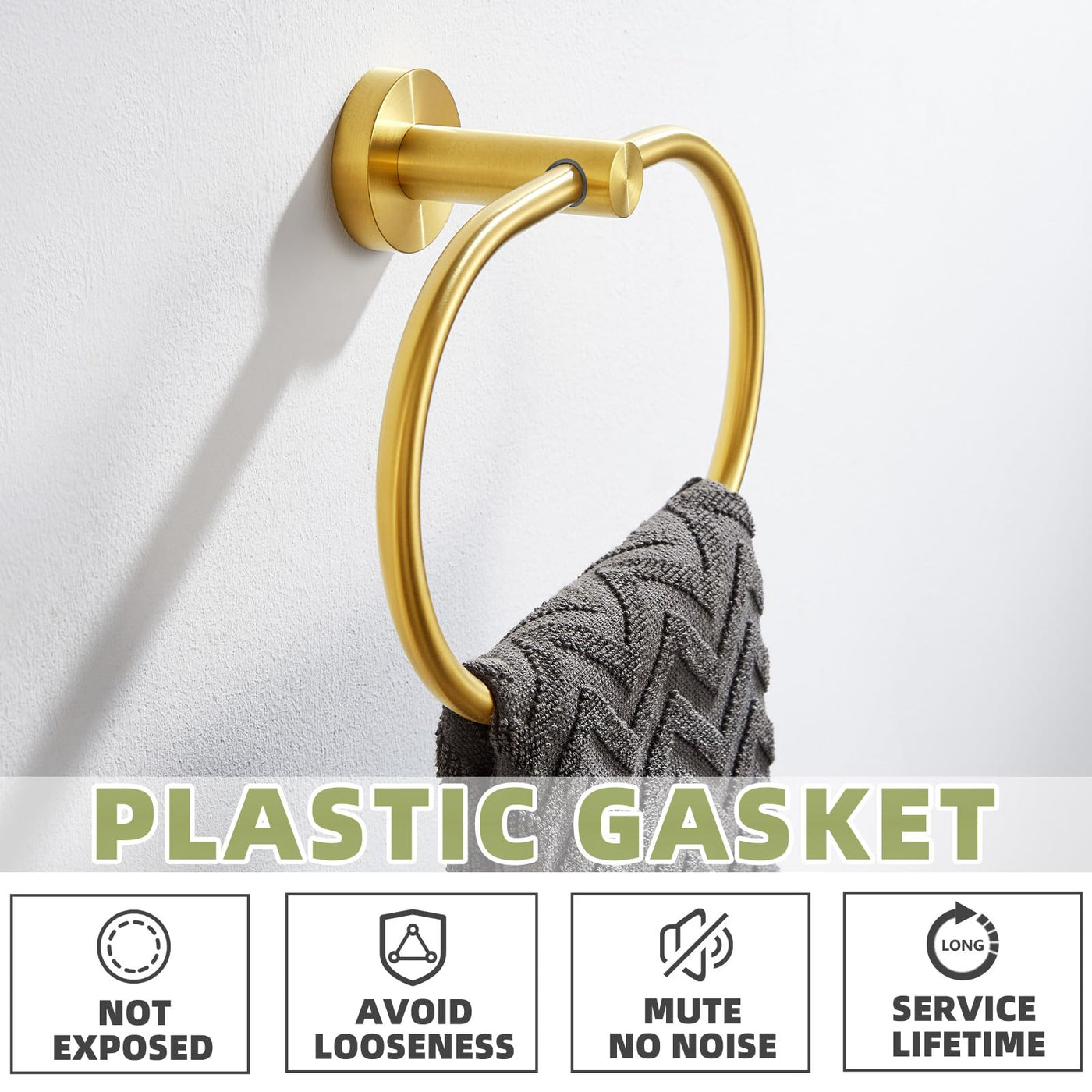 - Q: What color finish does the towel ring have? A: The towel ring has a luxurious brushed gold finish that enhances the decor of your bathroom.
