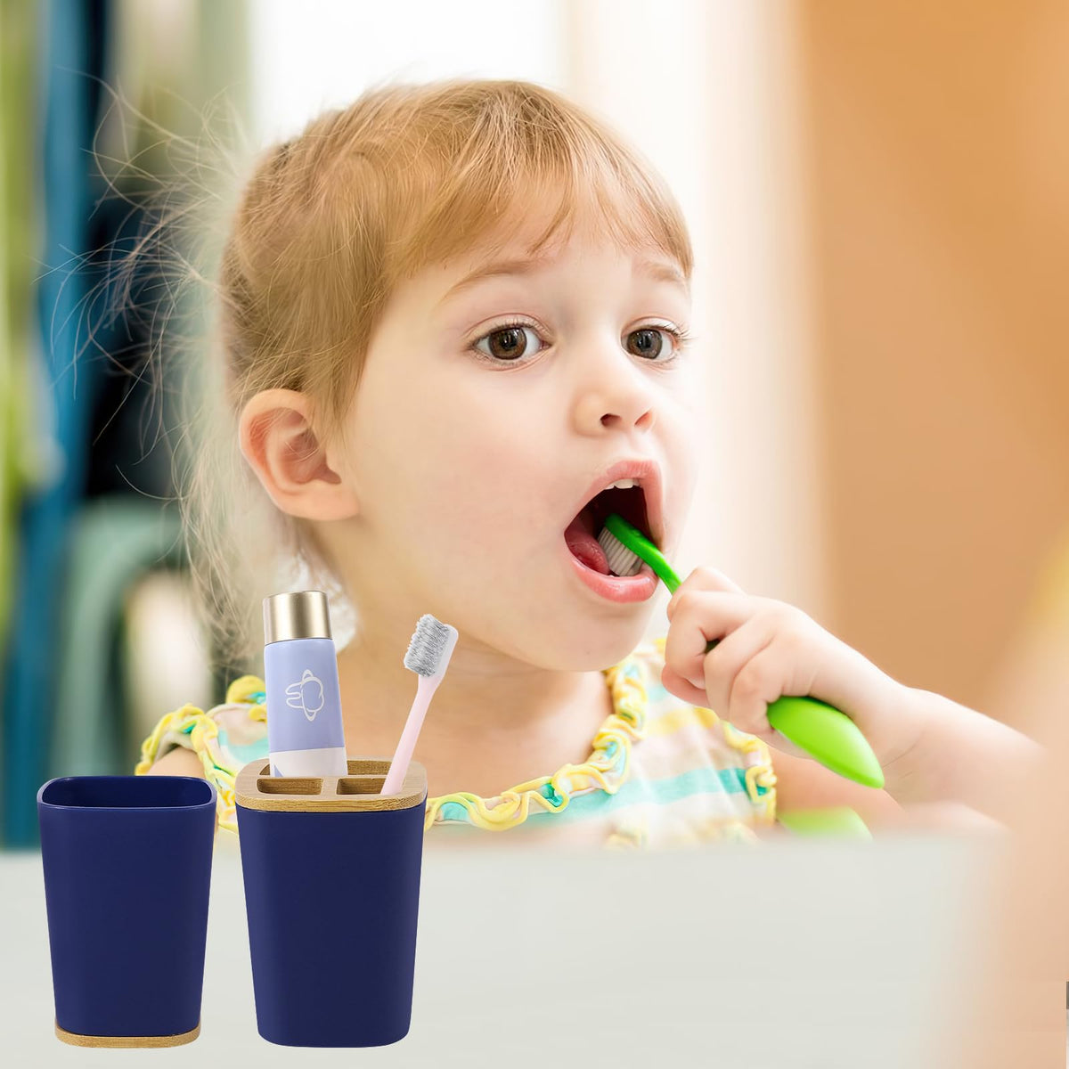 - Q: What items are included in the 9-piece bathroom accessories set? A: The set includes a toothbrush holder, toothbrush cup, lotion soap dispenser, soap dish, toilet brush with holder, trash can, vanity tray, and two Q-tip holders.