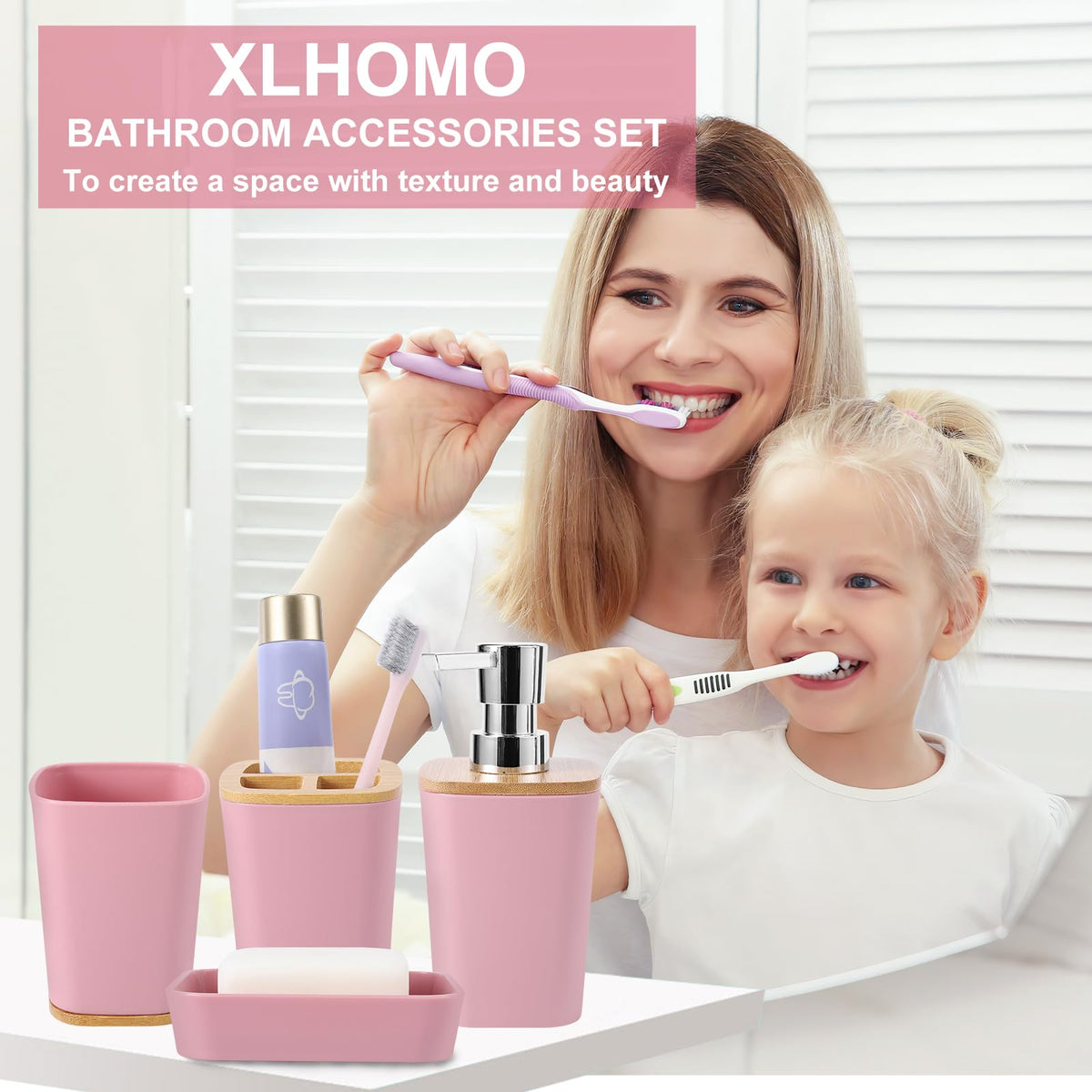 Bathroom Accessories Set, 9 Piece Pink Bathroom Decor Sets With Trash Can,Toothbrush Holder,Toothbrush Cup,Lotion Soap Dispenser
