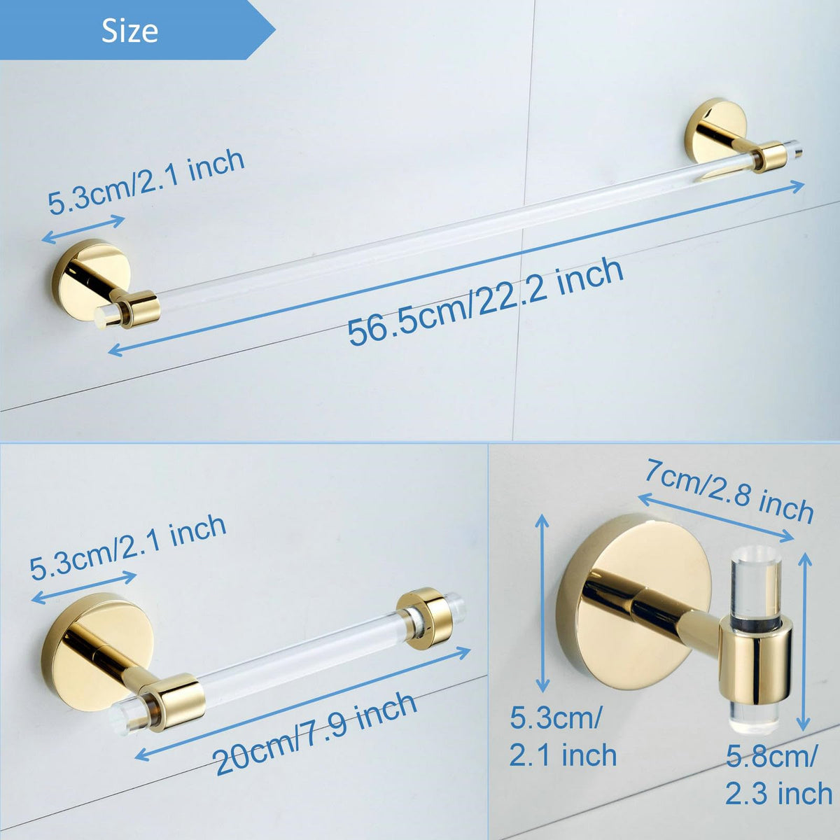 • Q: How do I care for the acrylic towel bar? A: To maintain the acrylic towel bar, simply clean it with a soft cloth and mild detergent. Avoid abrasive cleaners that may scratch the surface.