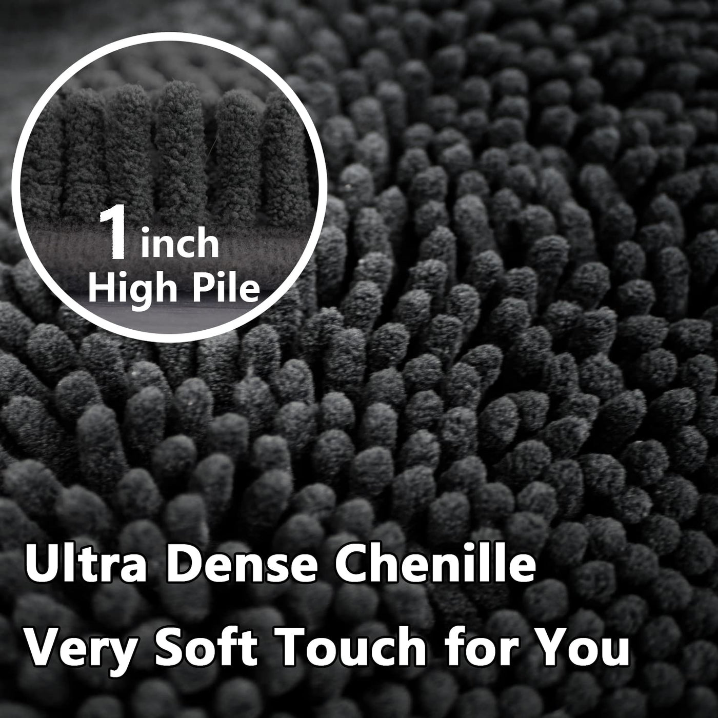 Bathroom Rugs Bath Mat Chenille 3-Piece Extra Soft and Absorbent Shag Bath Rugs Machine Wash Mat Strong PVC Non-Slip Underside Plush Carpet Bathroom Mats (Grey)