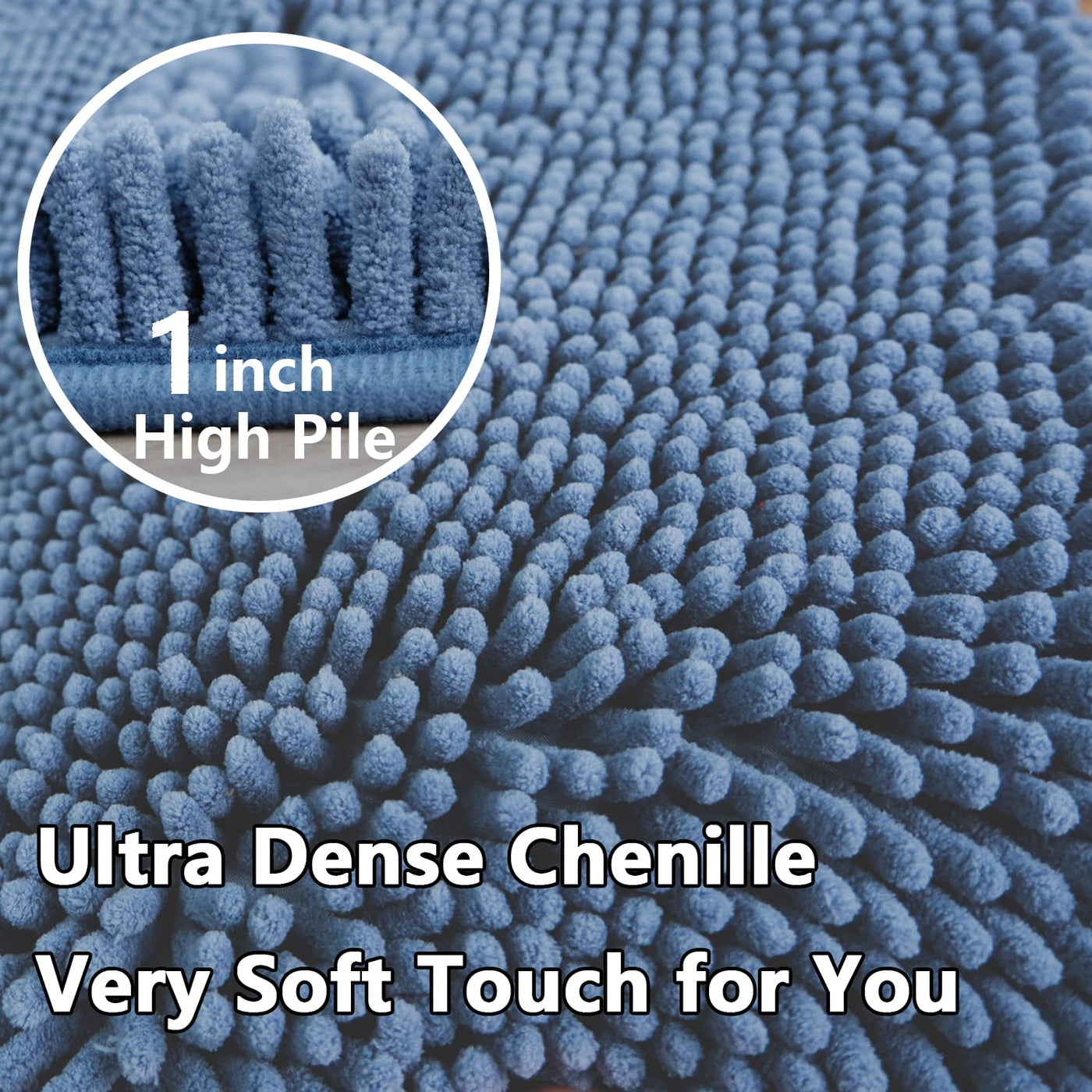 Bathroom Rugs Chenille 3-Piece Extra Soft and Absorbent Shag Bathroom Rugs Machine Wash Mat Strong PVC Non-Slip Underside Plush Carpet Mats (Deep Blue)