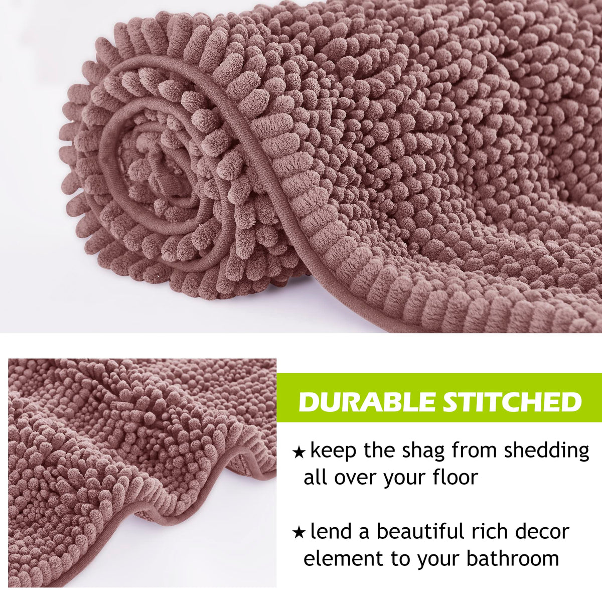 • Q: How quickly does the rug absorb water? A: The thick microfiber chenille can quickly soak up water, helping to keep your floor dry after stepping out of the bath or shower.