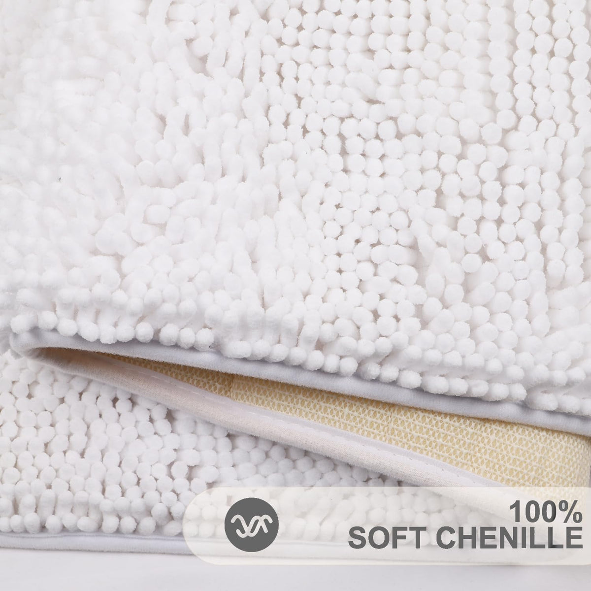 Bathroom Rugs Non Slip Chenille Long White Bathroom Runner With Rubber Backing, Fluffy Soft, Ultra Absorbent And Machine Washabl