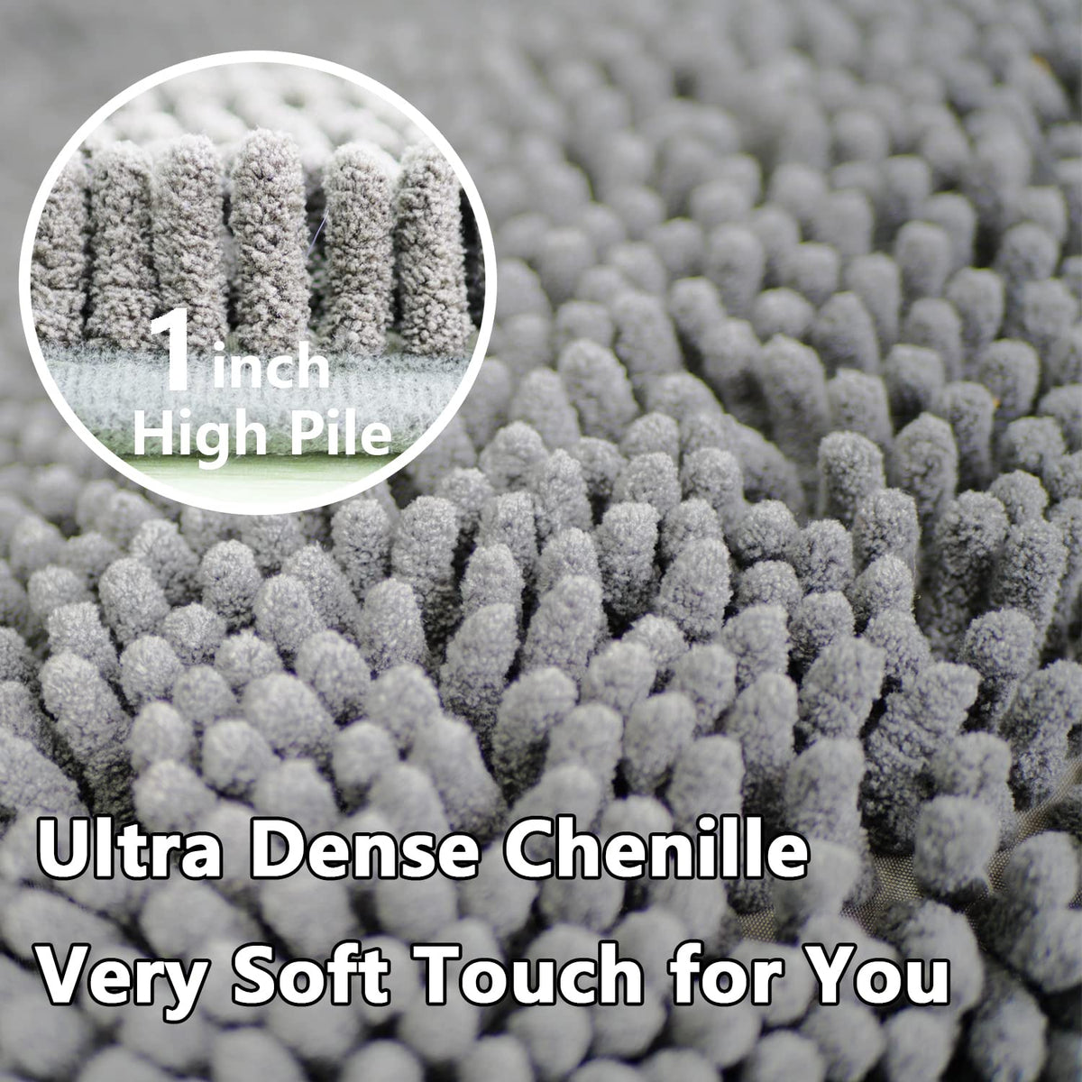 Bathroom Rugs Sets 3 Piece Extra Soft and Absorbent Shag Chenille bathroom Rugs Set Machine Washable Bathroom Rug Set Strong PVC Non-Slip Underside Plush Bathroom Rug Sets 3 Piece (Light Grey)