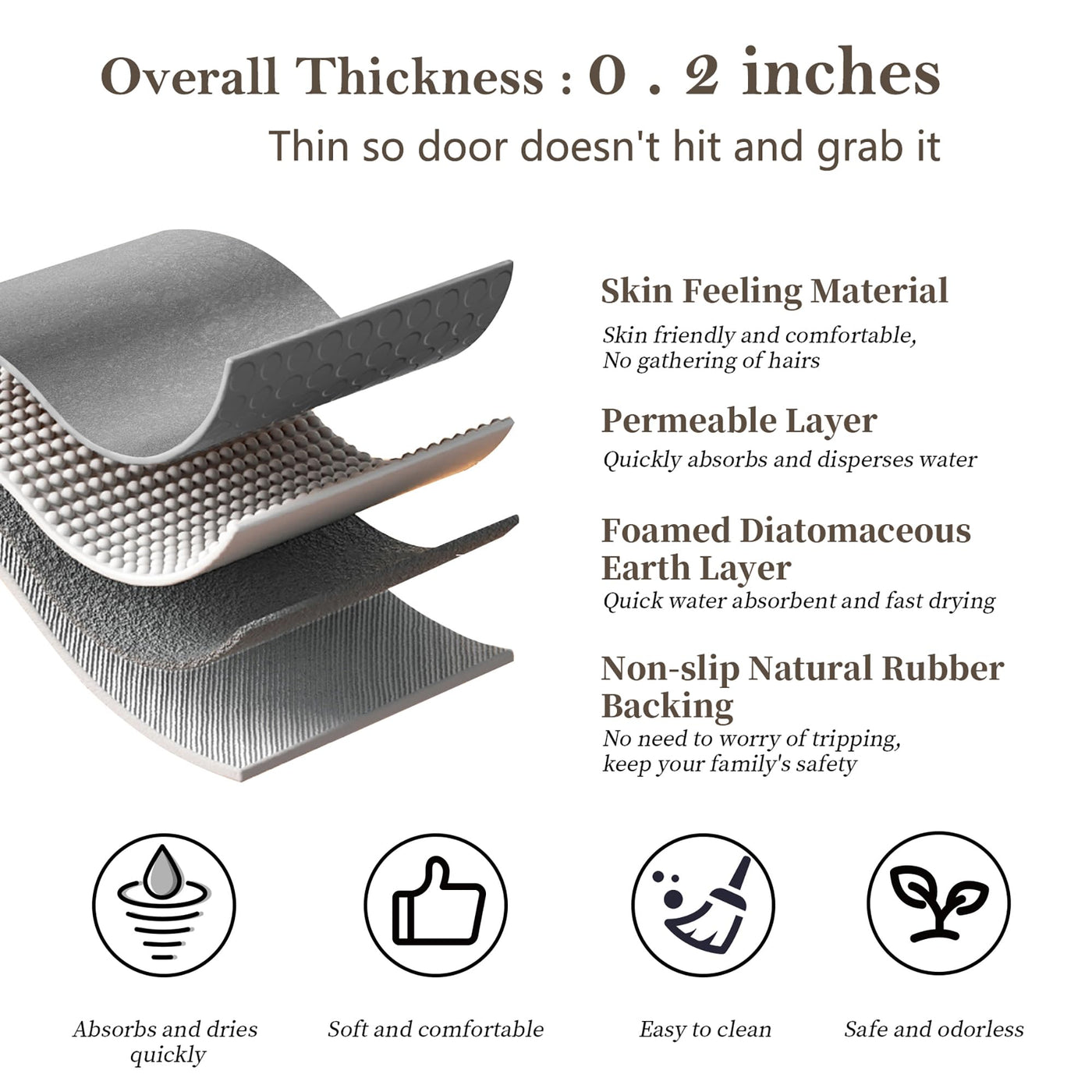 • Q: How quickly does the Bathroom Runner Mat dry after use? A: The mat dries quickly thanks to its diatom mud material, allowing it to return to a dry state within minutes after absorbing water.