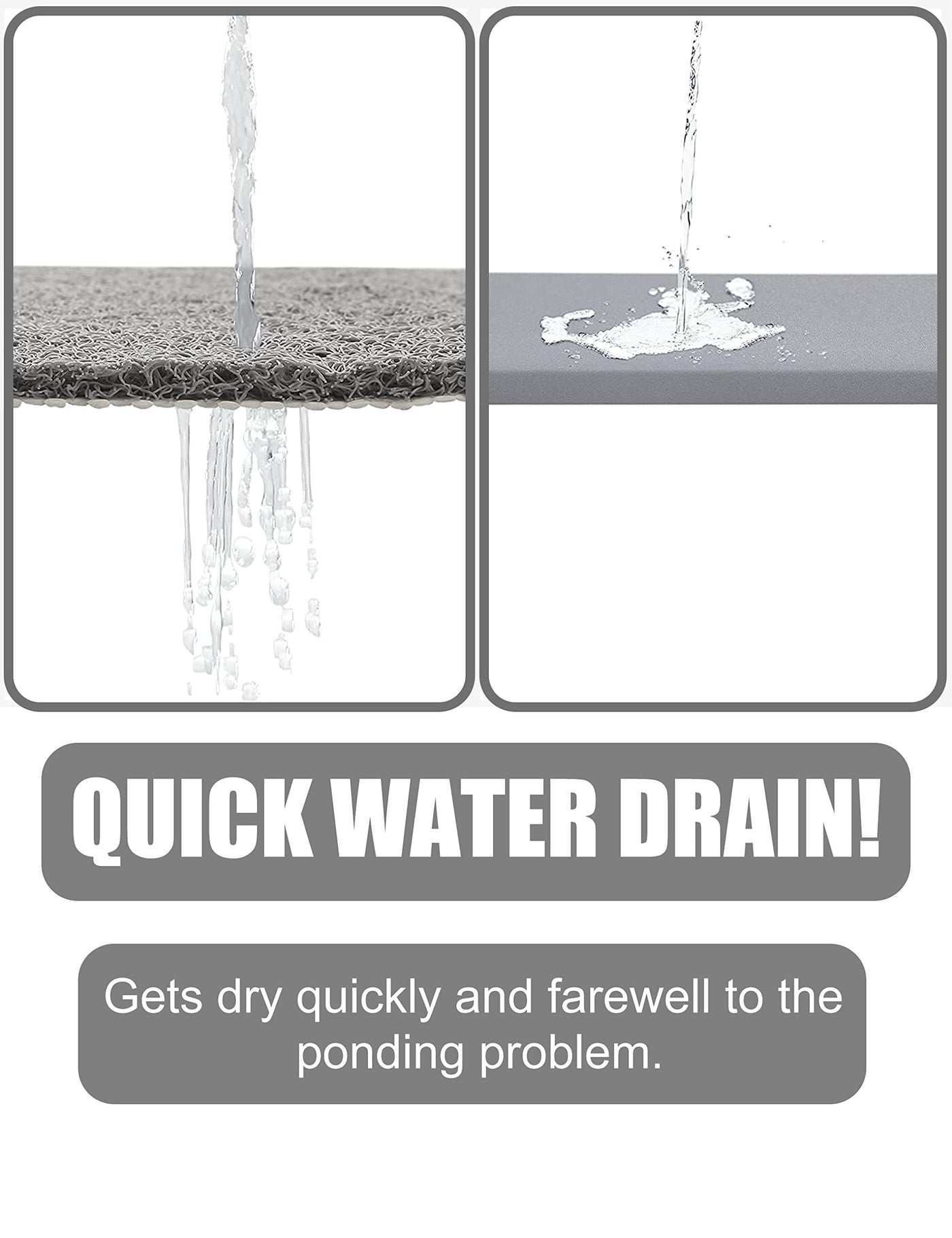 - Q: How does the quick drain feature work? A: The mat includes hundreds of drainage holes that allow water to quickly drain and dry, helping to maintain a clean and tidy shower area.