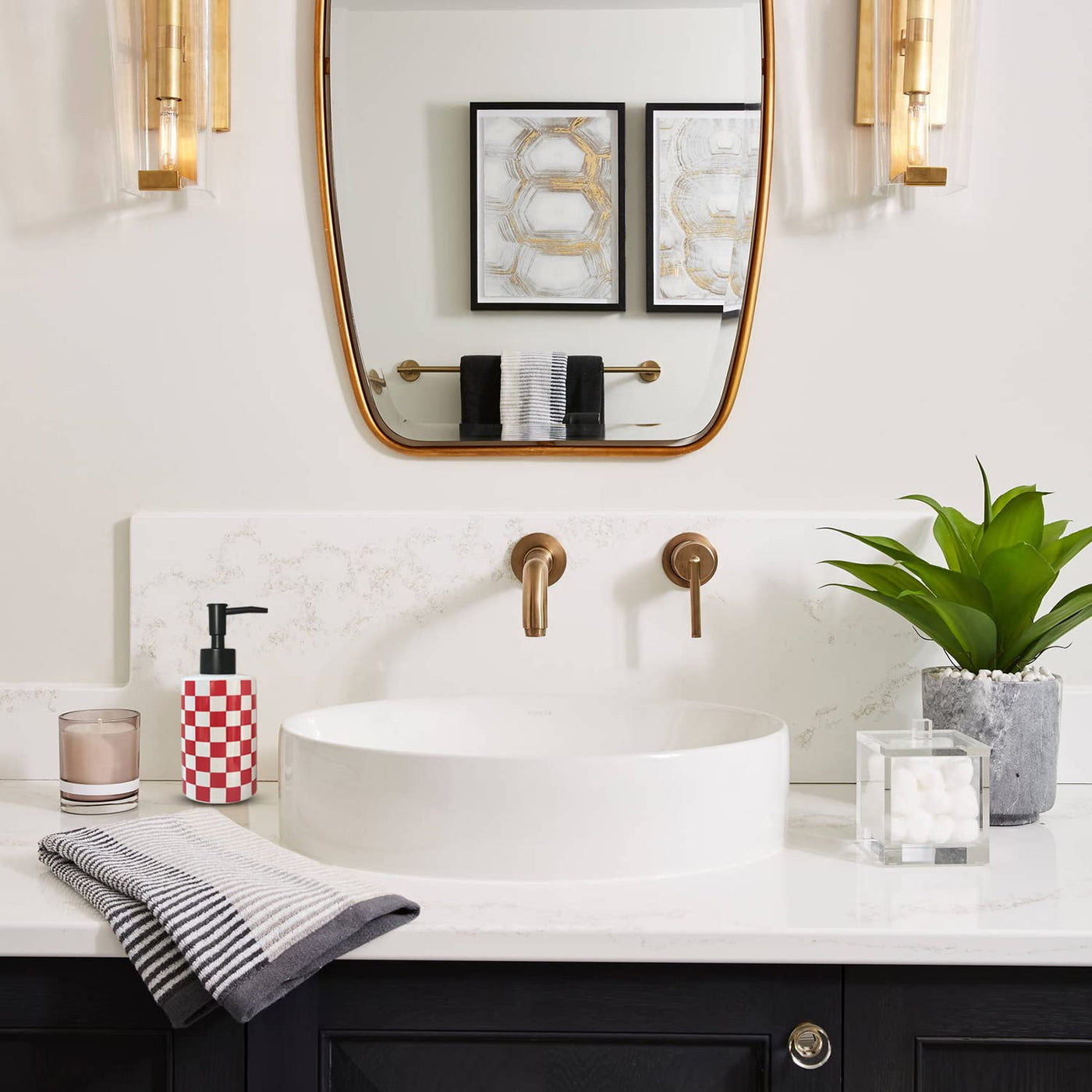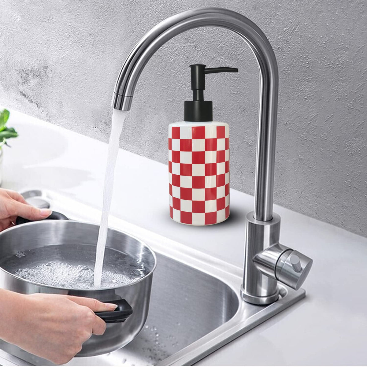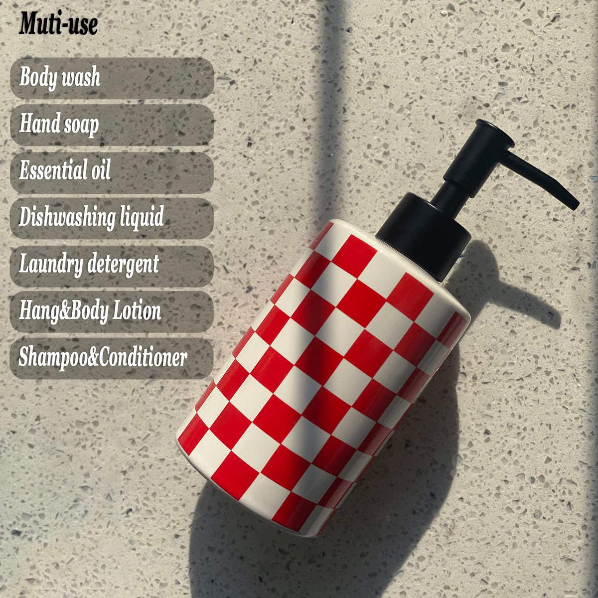 Bathroom Soap Dispenser With Matte Black Pump White Ceramic Soap Dispenser For Kitchen Checkerboard Empty Pump Bottle (Red)