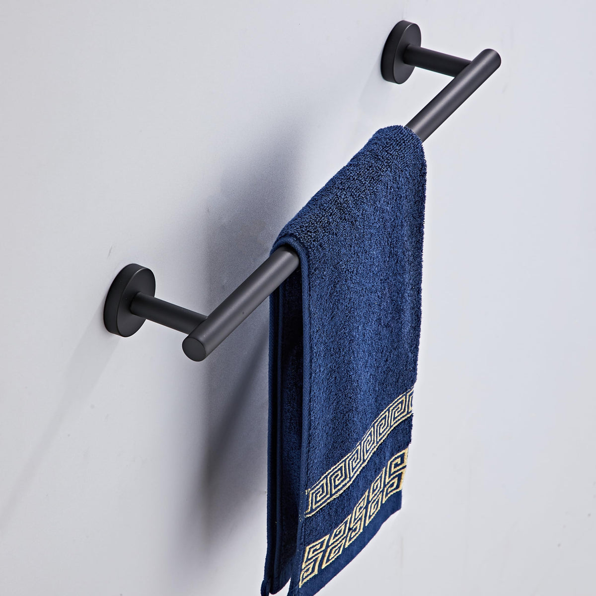 - Q: What style of decor does this towel bar fit? A: The matte black finish and modern design of the towel bar make it a versatile addition to various bathroom styles, creating an elegant atmosphere.