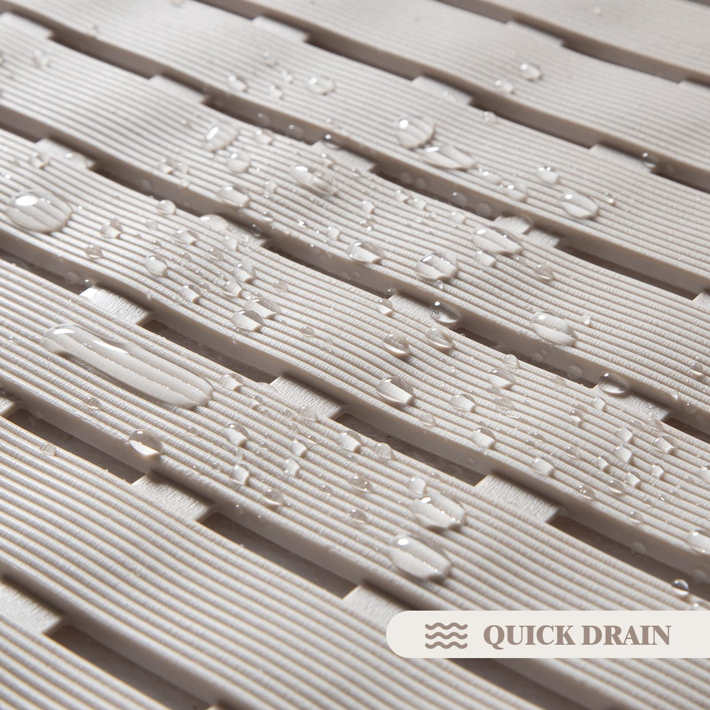 • Q: Does the mat allow water to drain easily? A: Yes, the slotted design of the mat allows water to drain quickly, promoting faster drying and preventing water buildup.