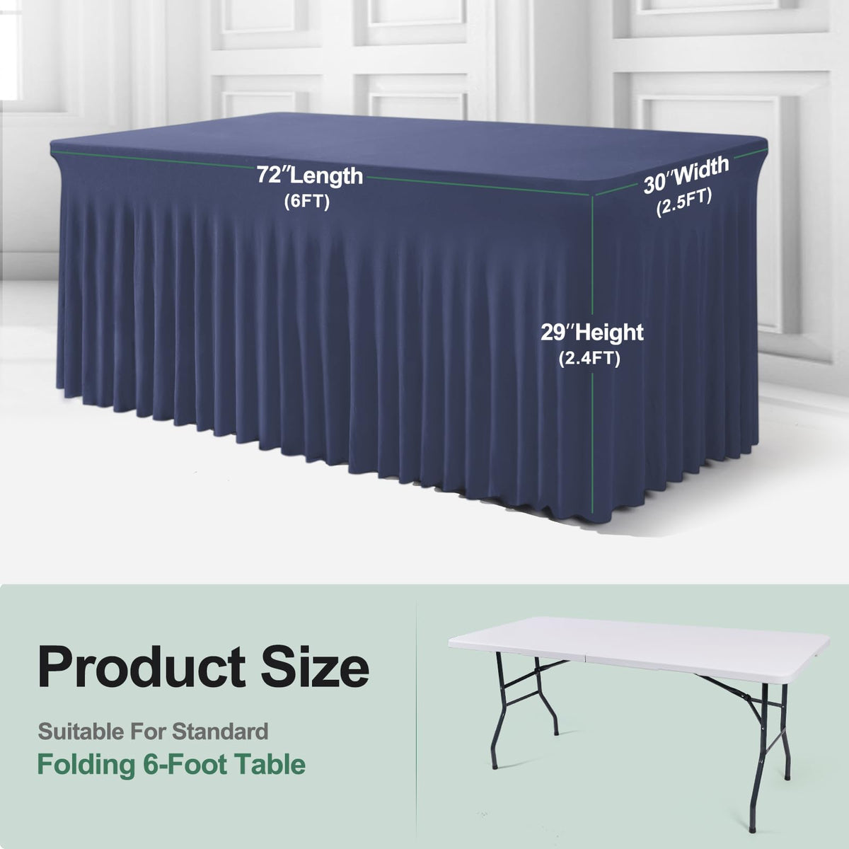 Bddc 2 Pack Table Skirts For Rectangle Tables 6Ft - One-Piece Navy Bluetable Covers For 6 Foot Tables, Wrinkle Resistant Ruffles